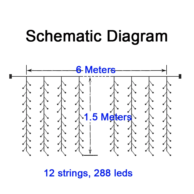 Светодиодная осветительная лента для занавесок, 6x1,5 м