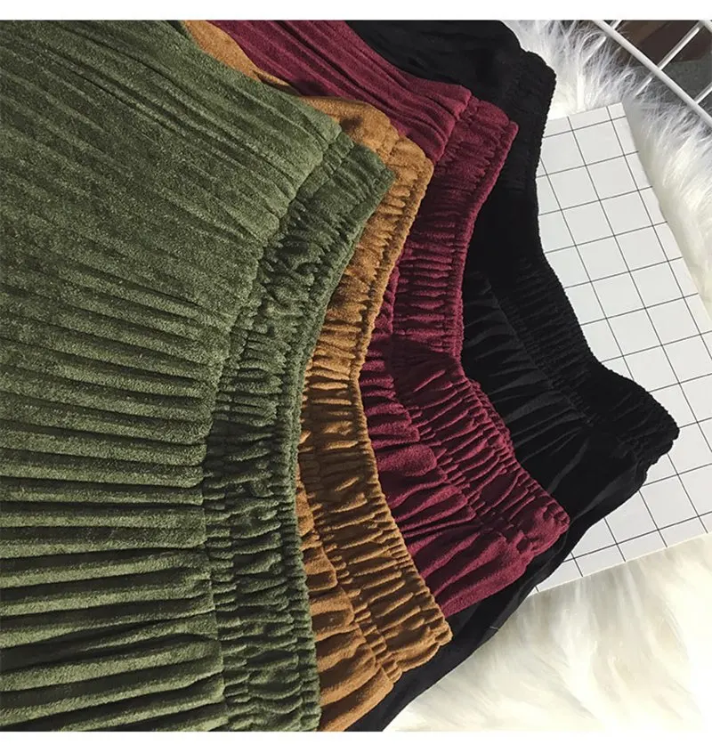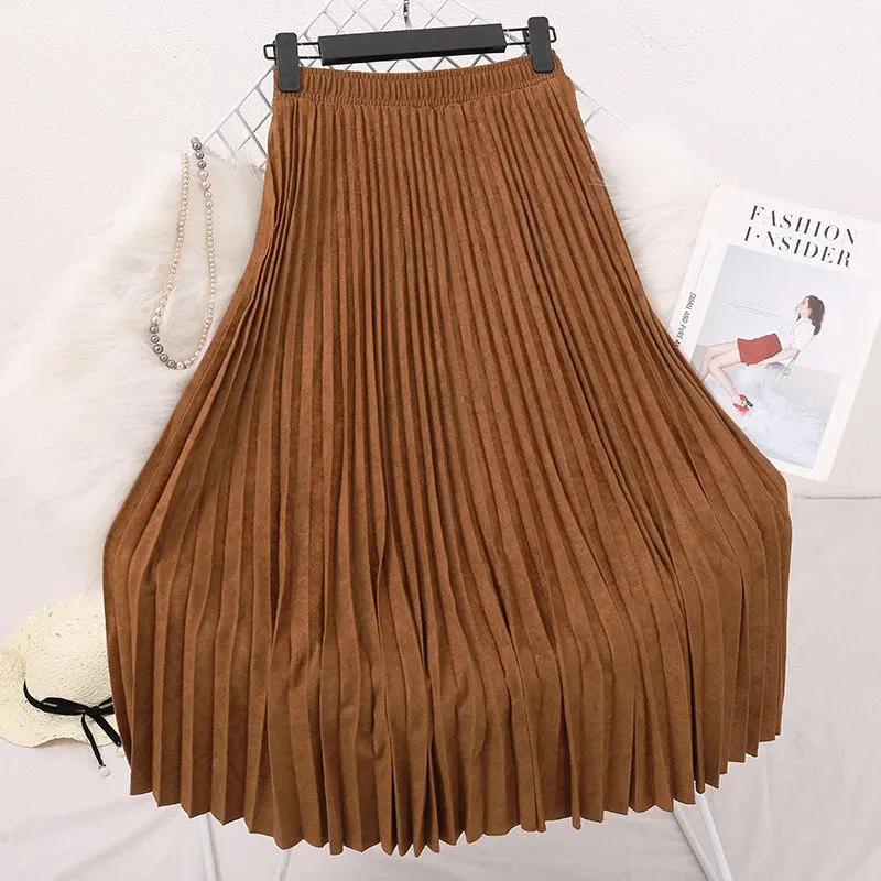 Женская элегантная замшевая юбка средней длины, Корейская винтажная Женская плиссированная плотная Теплая юбка с высокой талией, Mujer Faldas 2020, Осень-зима, Sk622
