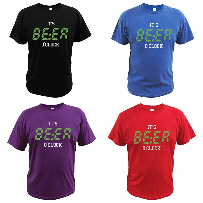 Футболка с надписью It's Beer O'Clock, новинка, смешная футболка с круглым вырезом, лучший подарок, одежда