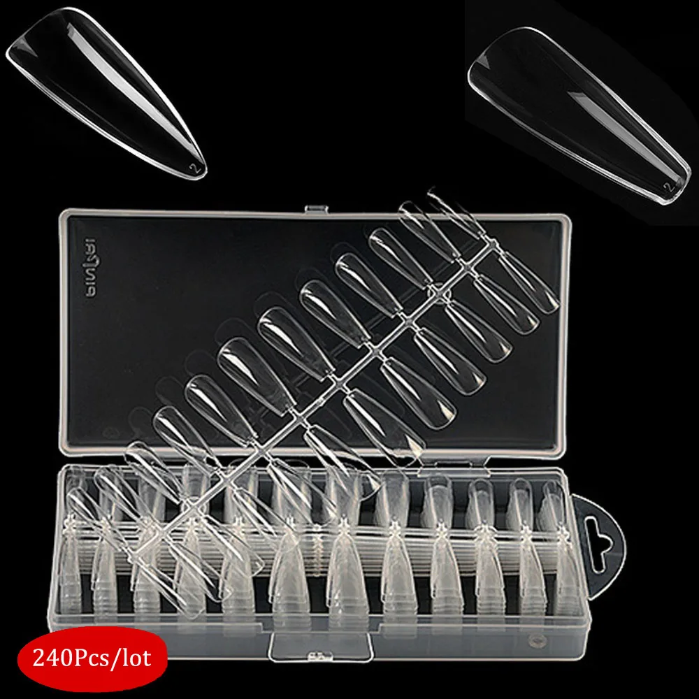 240 шт. нажимные прозрачные длинные Типсы на шпильках, Прозрачные т...