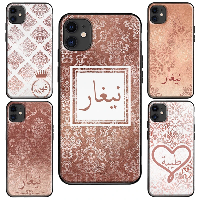 Чехол цвета розового золота с Дамасским узором на арабском языке для iPhone 11 Pro Max XS X XR 7 8 Plus SE 2020, чехол для iPhone 12 Pro Max 13 mini