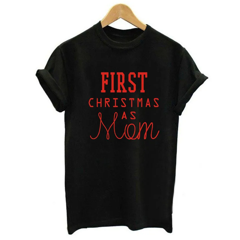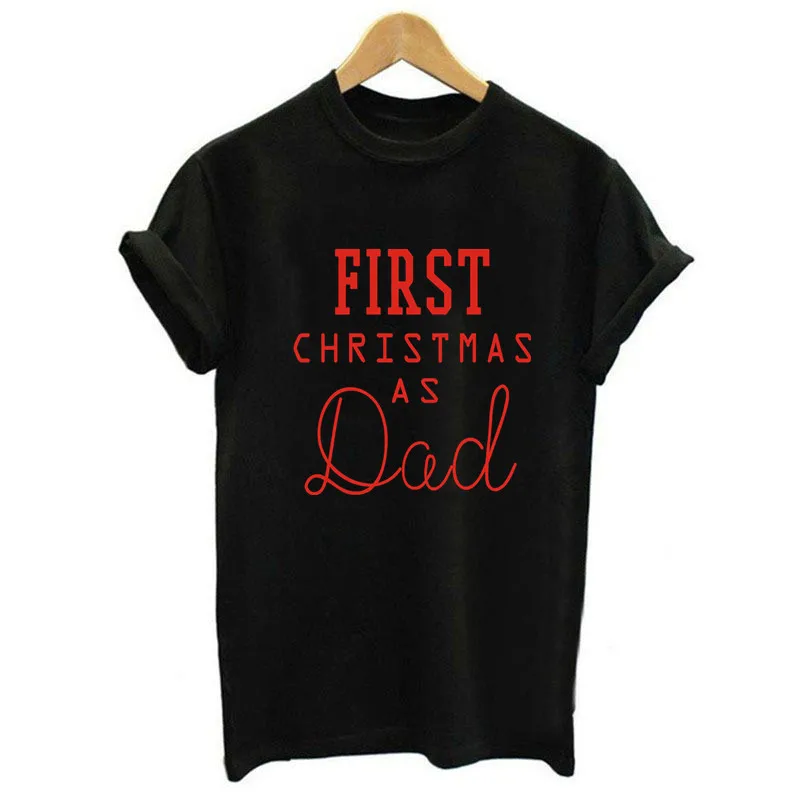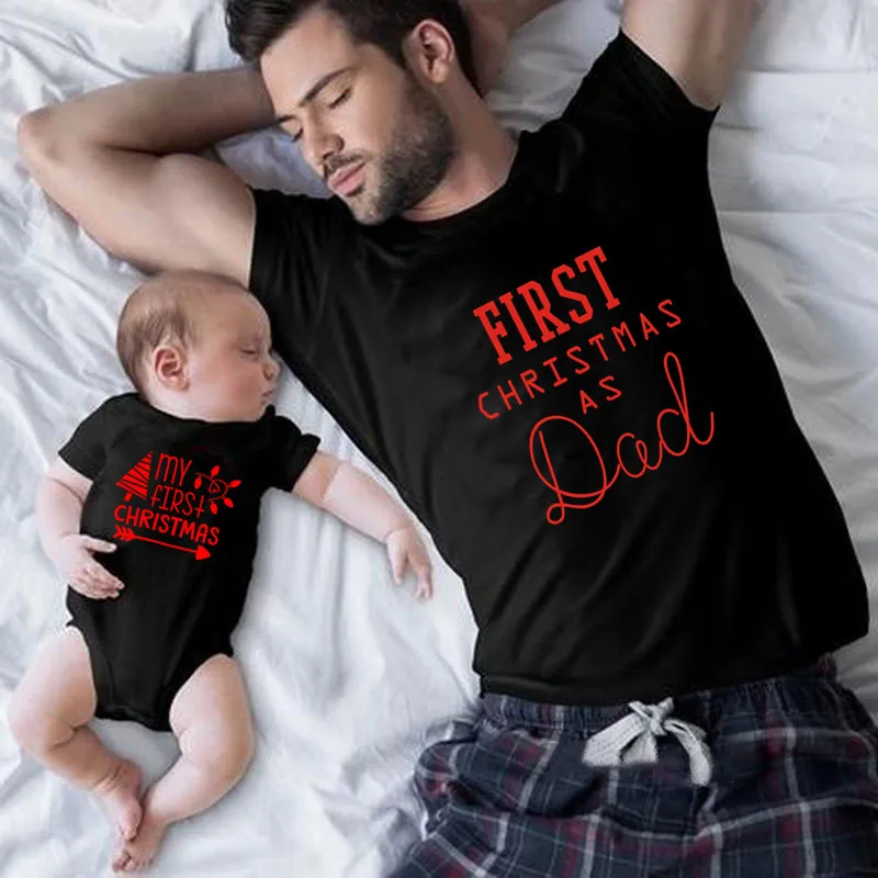 1 шт. первое Рождество, как, мамы и папы; Забавные Семейные комплекты футболки для мамы, папы и детей; Детская футболка с коротким рукавом, черная футболка, одежда