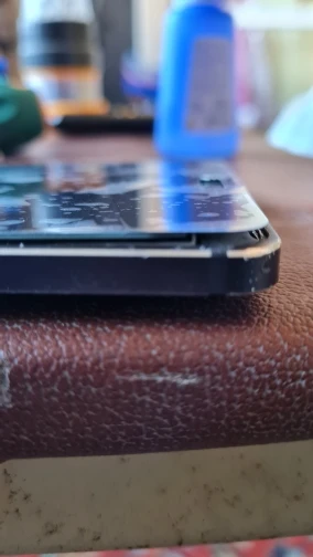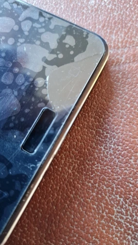 Как сказал мастер который устанавливал, шлейф толще заводского, из-за этого экран не плотно приклеивается, и стекло немного смещено, поэтому кнопка посередине не ровно встала. А так экран работает идеально.