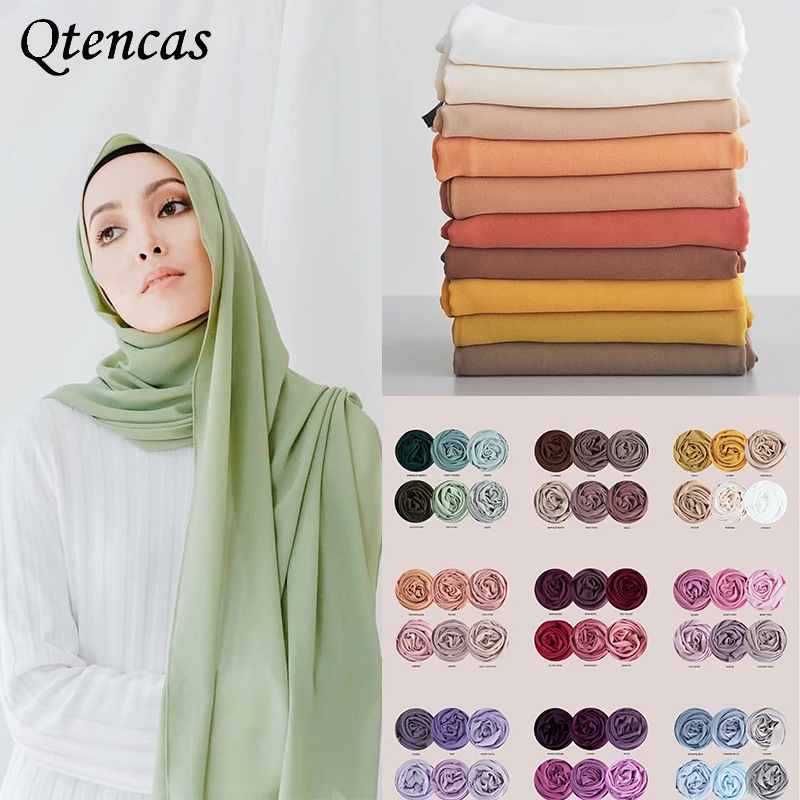 Мусульманский шифоновый хиджаб, женский шарф 2020, ислам, однотонный платок, накидка на голову, мусульманский платок-хиджаб