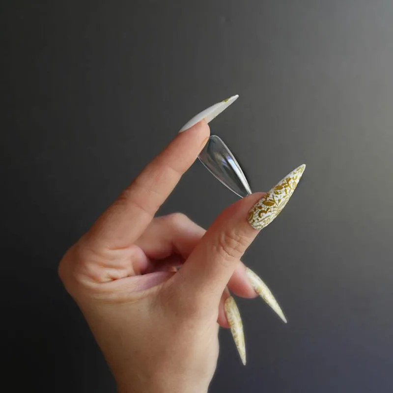Различные размерыПрозрачный и гибкийМатериал: пластикЦвет: натуральный, прозрачныйКак подать заявкуКак наносить искусственные ногти в домашних условиях:Шаг 1:Для начала, сначала подготовьте свои натуральные ногти; Вымойте руки, удалите любой лак или клей или что-либо еще с помощью ацетона.Шаг 2:Отодвиньте кутикулы.Шаг 3:Теперь слегка отполируйте свой натуральный ноготь, чтобы не было блеска и влаги на нем.Шаг 4:Если ваши натуральные ногти длинные, обрежьте их и обрежьте углы для лучшего захвата искусственных ногтей.Шаг 5:Теперь важный шаг, выбирая подходящий размер кончика ногтя. Этот шаг важен, так как он будет выглядеть очень плохо, если вы выберете неправильный размер. Найдите время и выберите точный размер наконечника, который соответствует c-изгибу естественного ногтевого слоя (слева направо). Если наконечник немного шире, то Вы можете запихнуть его вниз.Шаг 6:Как только вы выберете кончик, нанесите клей на полую часть кончика и нанесите его на ногти. Дайте ему небольшое давление, чтобы избежать пузырьков воздуха. Будьте осторожны, так как клей очень липкий.Шаг 7: пройденное расстояниеОставьте на 30 секунд. После этого Отрежьте кончик немного дольше желаемой длины с помощью кончика или ножниц. (так как подача и формовка сделают их меньше по длине.)Шаг 8:Формируйте кончики и стороны искусственных ногтей (чтобы они точно подходили на ногтевой ложе). Отполируйте их для финиша.Шаг 9:Теперь возьмите буфер и начните легко полировать там, где искусственный наконечник соответствует естественному ногтю, чтобы сделать ровную поверхность. Не Поливайте натуральные ногти, старайтесь делать это только на искусственном наконечнике. Делайте это медленно, чтобы вы могли увидеть, что вы делаете, и не полируйте весь искусственный кончик на ногтевой ложе.Шаг 10:Очистите ноготь и нанесите основание. Нанесите лак для ногтей и нанесите на новые длинные ногти.