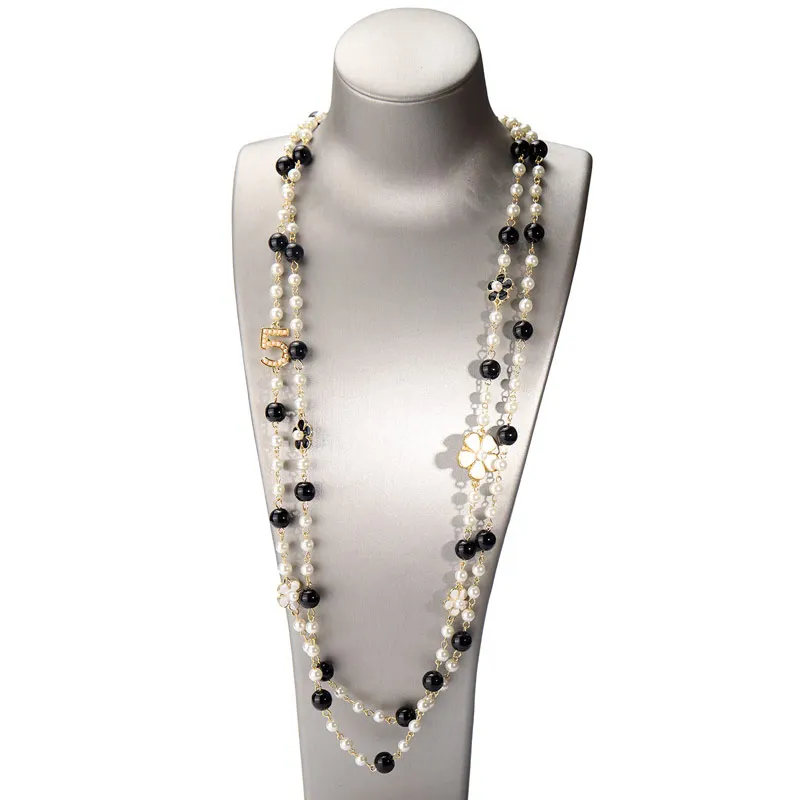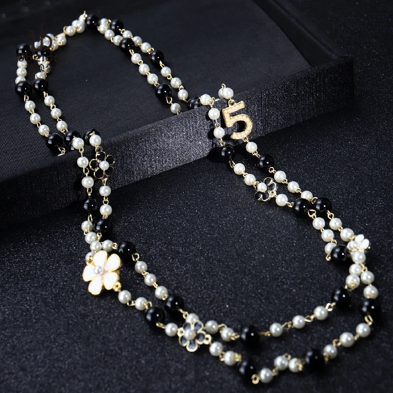 Женское жемчужное ожерелье, двухслойная цепочка на свитер, с цифрами 5