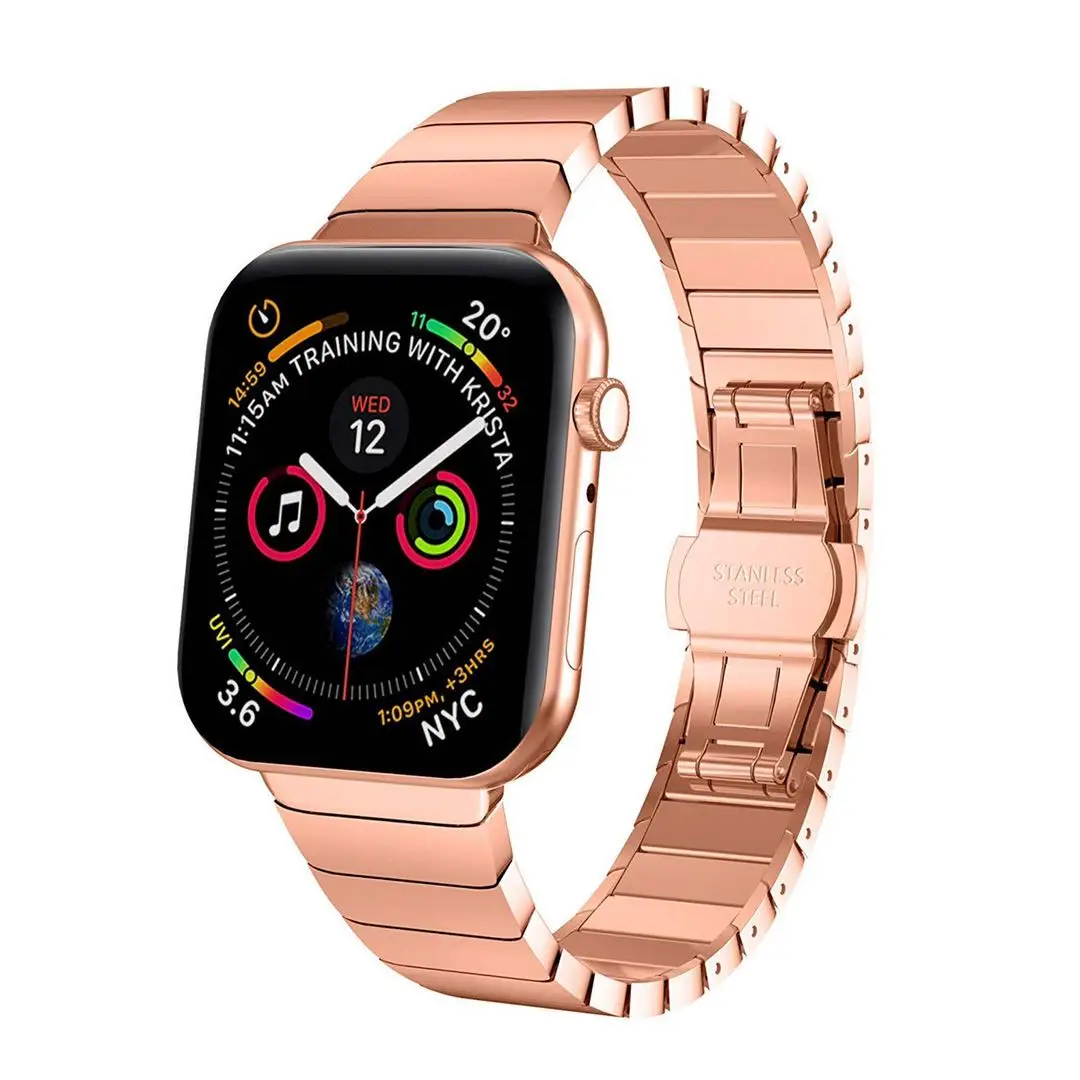Ремешок из нержавеющей стали для Apple Watch 7 6 54 SE, металлический браслет-бабочка для iWatch series 3, 44 мм 40 мм 42 мм 38 мм