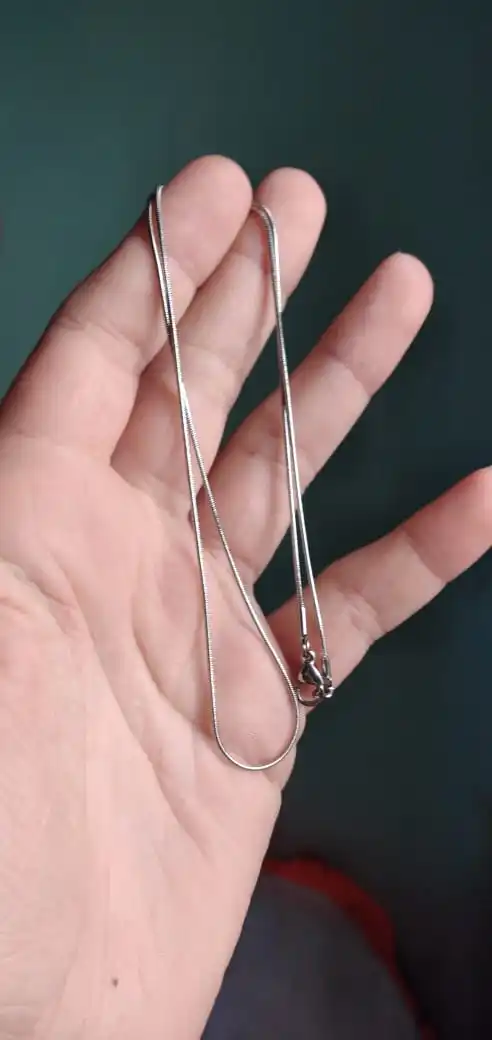 Cette chaîne est conforme à la description et aux photos. La chaîne est discrète, élégante et très souple. Je suis satisfaite. Livraison en 25 jours. Merci au vendeur.