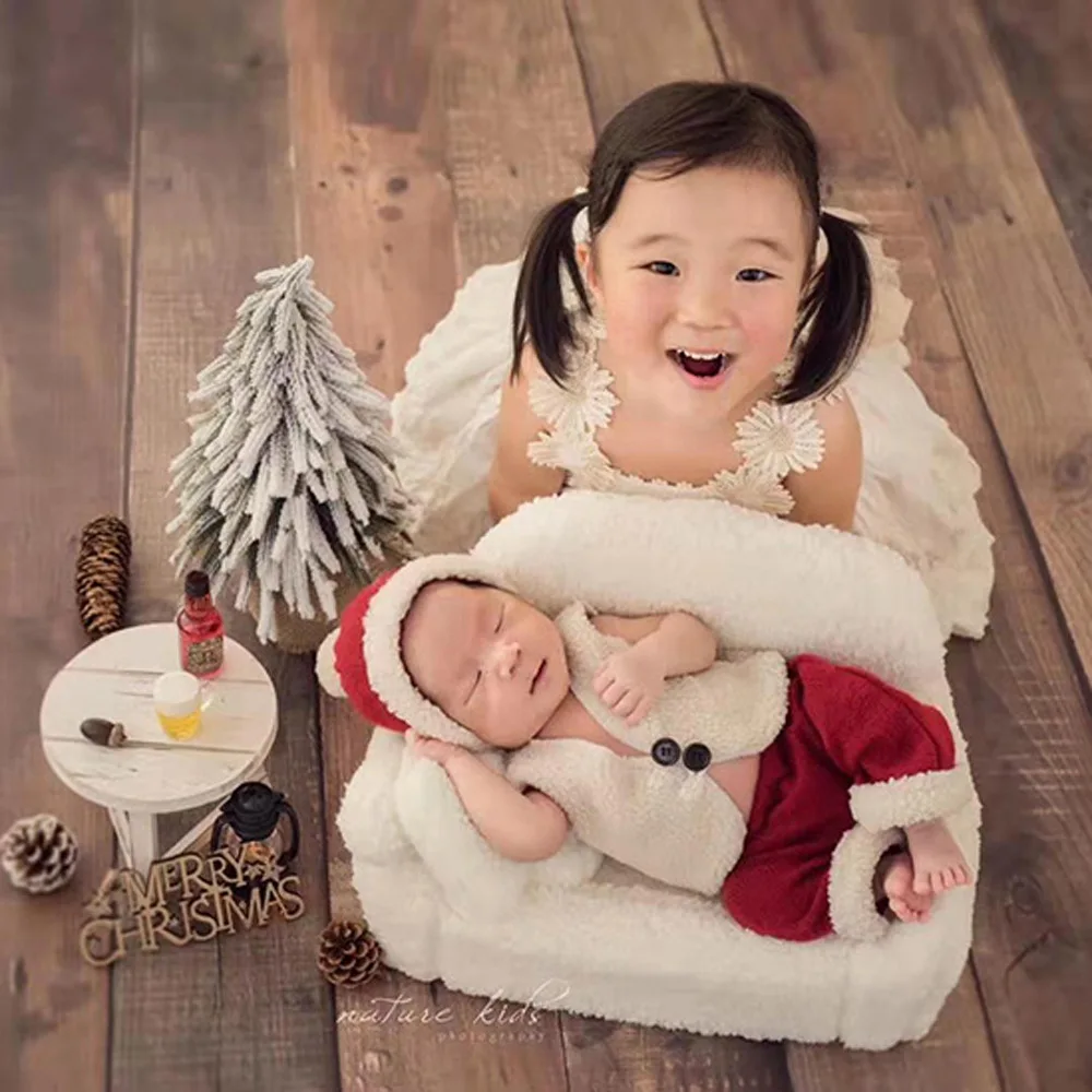 Реквизит для фотосъемки новорожденных; Детский комбинезон; Жилет; Рождественская шляпа; Аксессуары для фотостудии