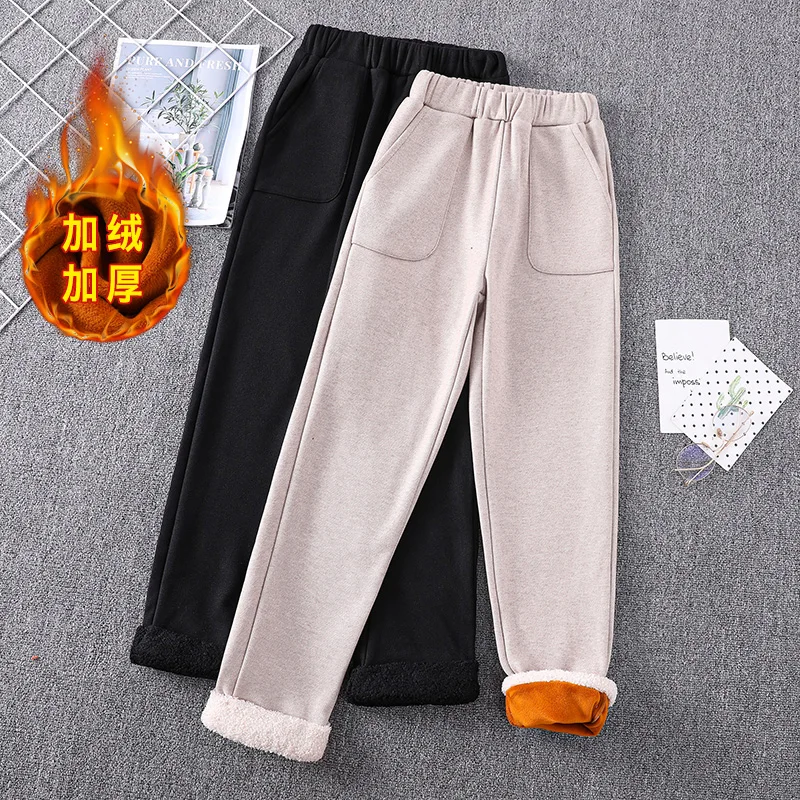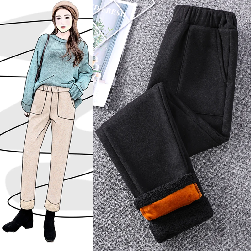 Шерстяные брюки женские зимние с высокой талией размера плюс вельветовые плотные свободные прямые брюки длиной до щиколотки 5xl 6xl