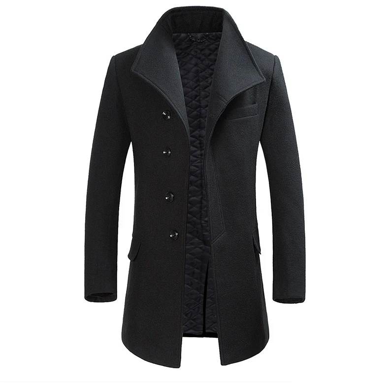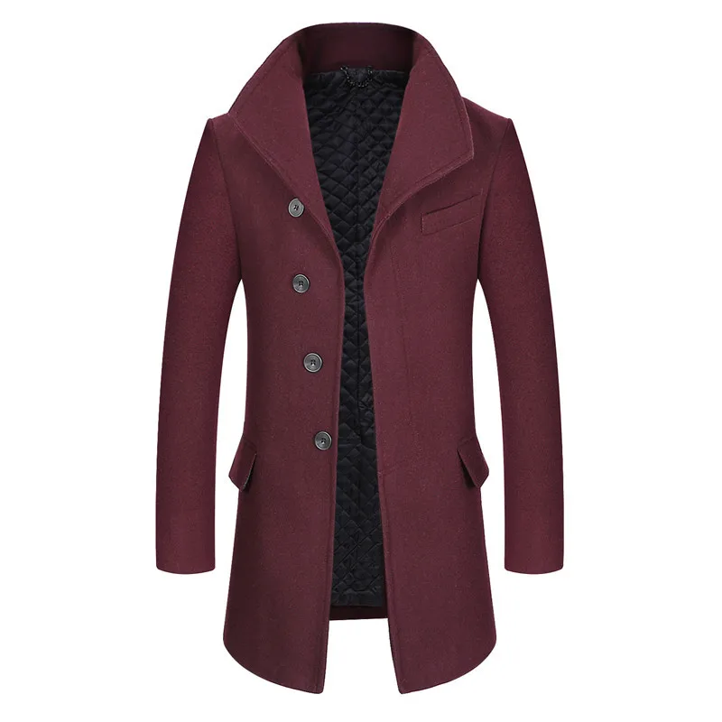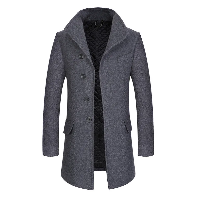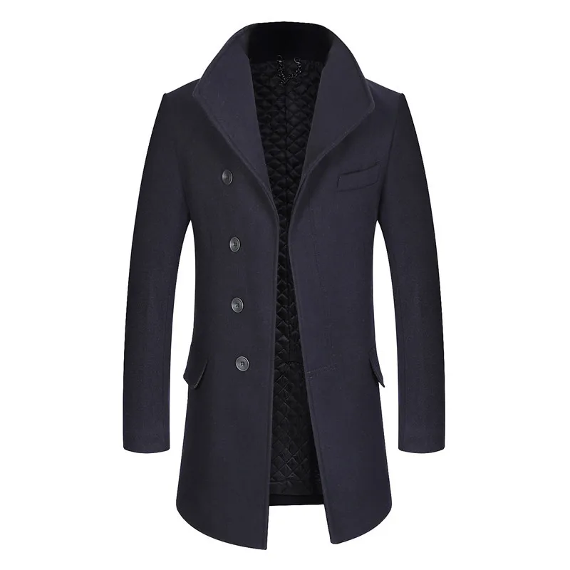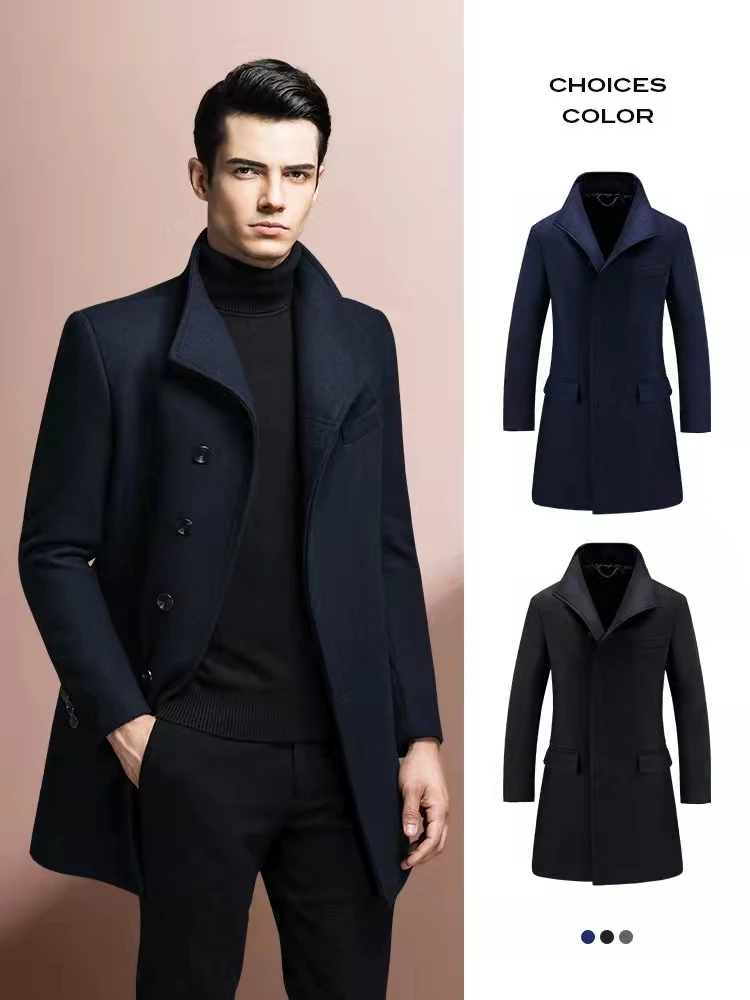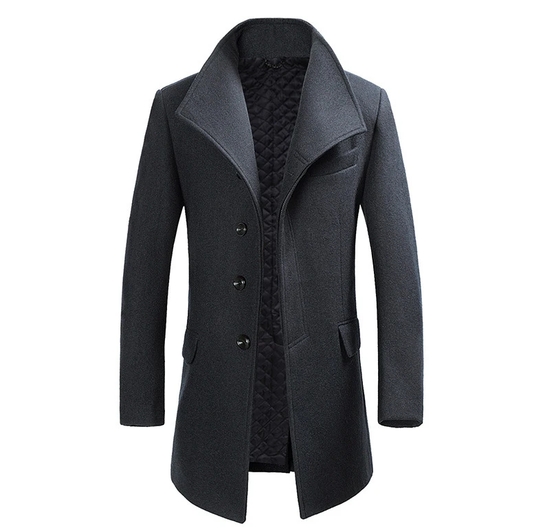 Новинка 2021, Элегантное длинное зимнее шерстяное пальто, высококачественное приталенное мужское пальто, длинное зимнее пальто для мужчин