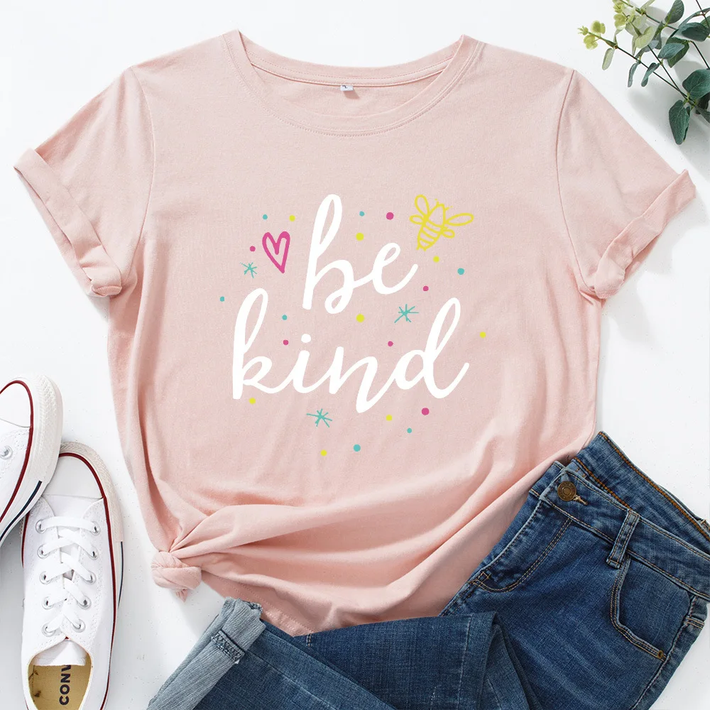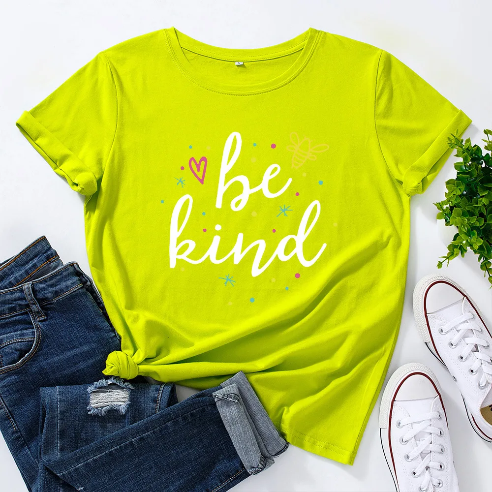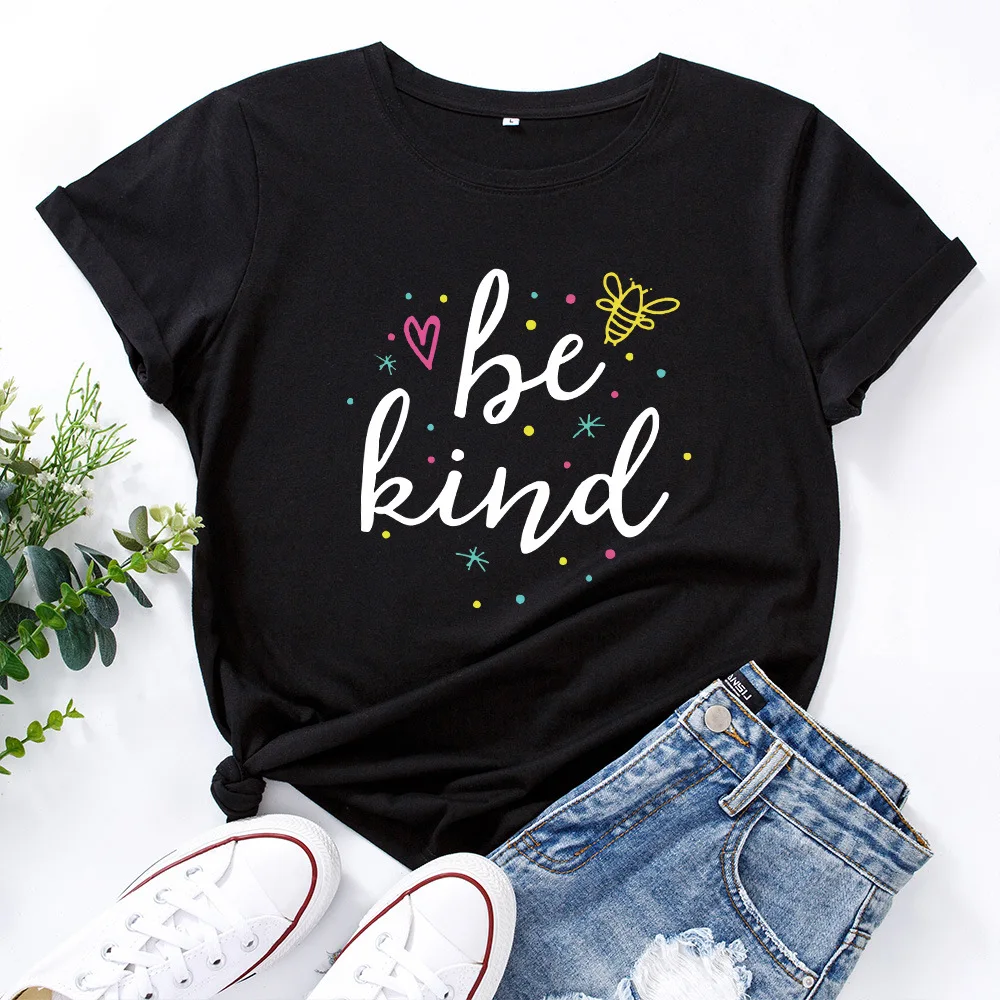 Футболка женская хлопковая с круглым вырезом, универсальная Милая мультяшная футболка с коротким рукавом и надписью Be Kind, Повседневная рубашка в стиле Харадзюку, 5XL, на лето