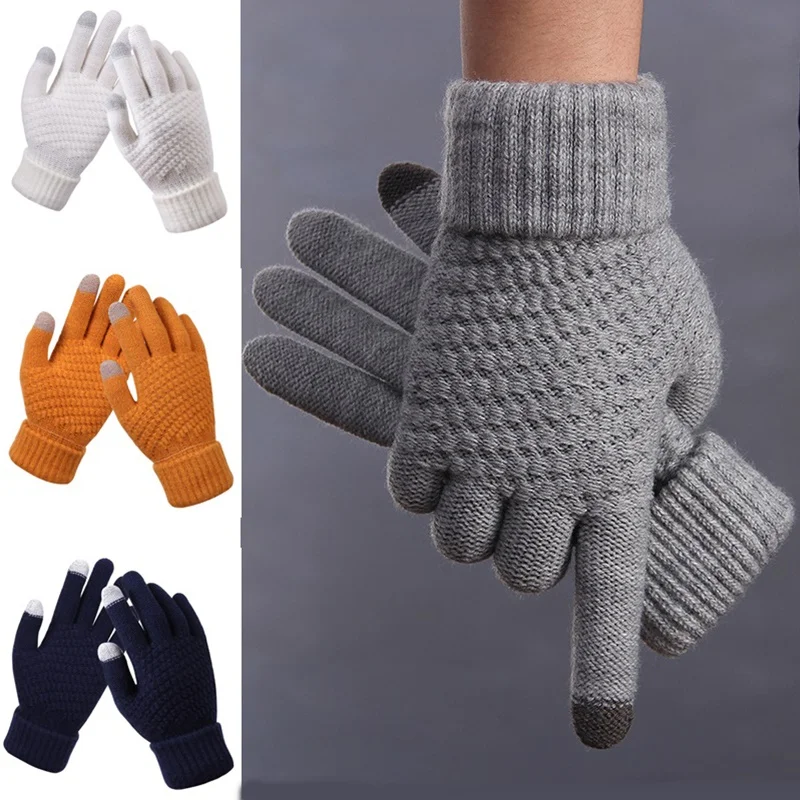 Женский кашемировый Трикотажные Зимние перчатки, кашемировые вязанные женские осень-зима зимние сохраняющие тепло перчатки для сенсорного экрана с защитой от Экран катание на лыжах перчатки
