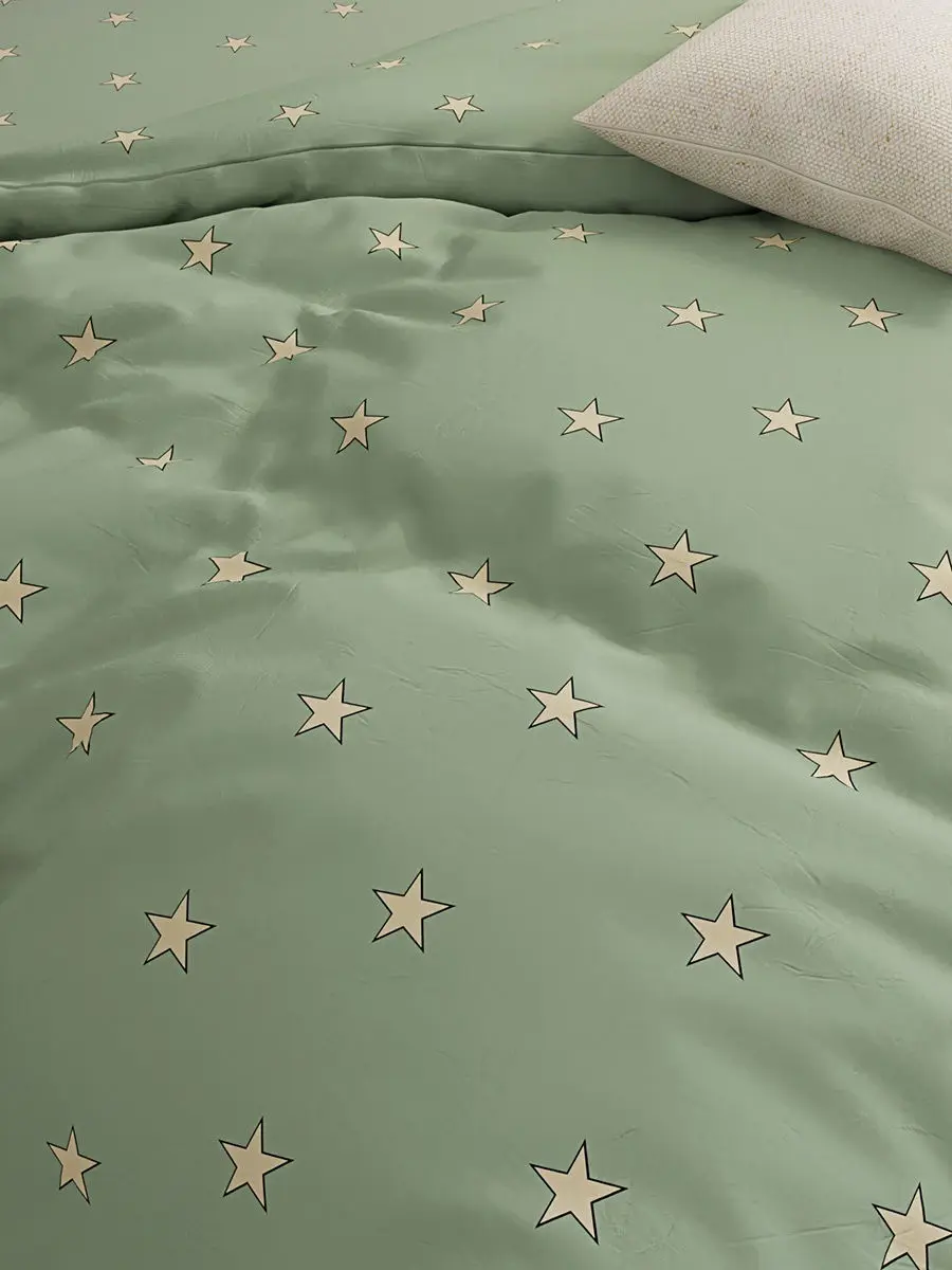 Красивая простыня зеленого цвета со звездами, на резинке, из сатина - 100% хлопковой ткани. Рассчитана на высоту матраса до 26 см. Резинка вшита в торцевые стороны с переходом на продольные стороны по 35 см. Ткань легкая и мягкая, с нежным сатиновым блеском, не скатывается и не электризуется, гигиеничная и гипоаллергенная, сохраняет свой первоначальный вид и цвет при температуре до 60 градусов. Произведено в России.