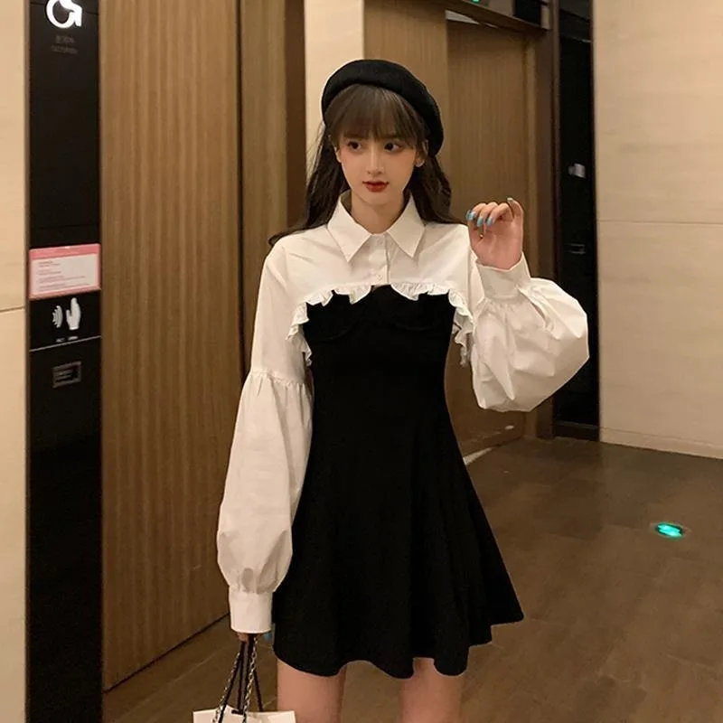 Женские комплекты, винтажная белая рубашка, платье-комбинация, 2 предмета, милые, милые, элегантные, новинка, универсальные, шикарные, модные костюмы, тонкие, простые
