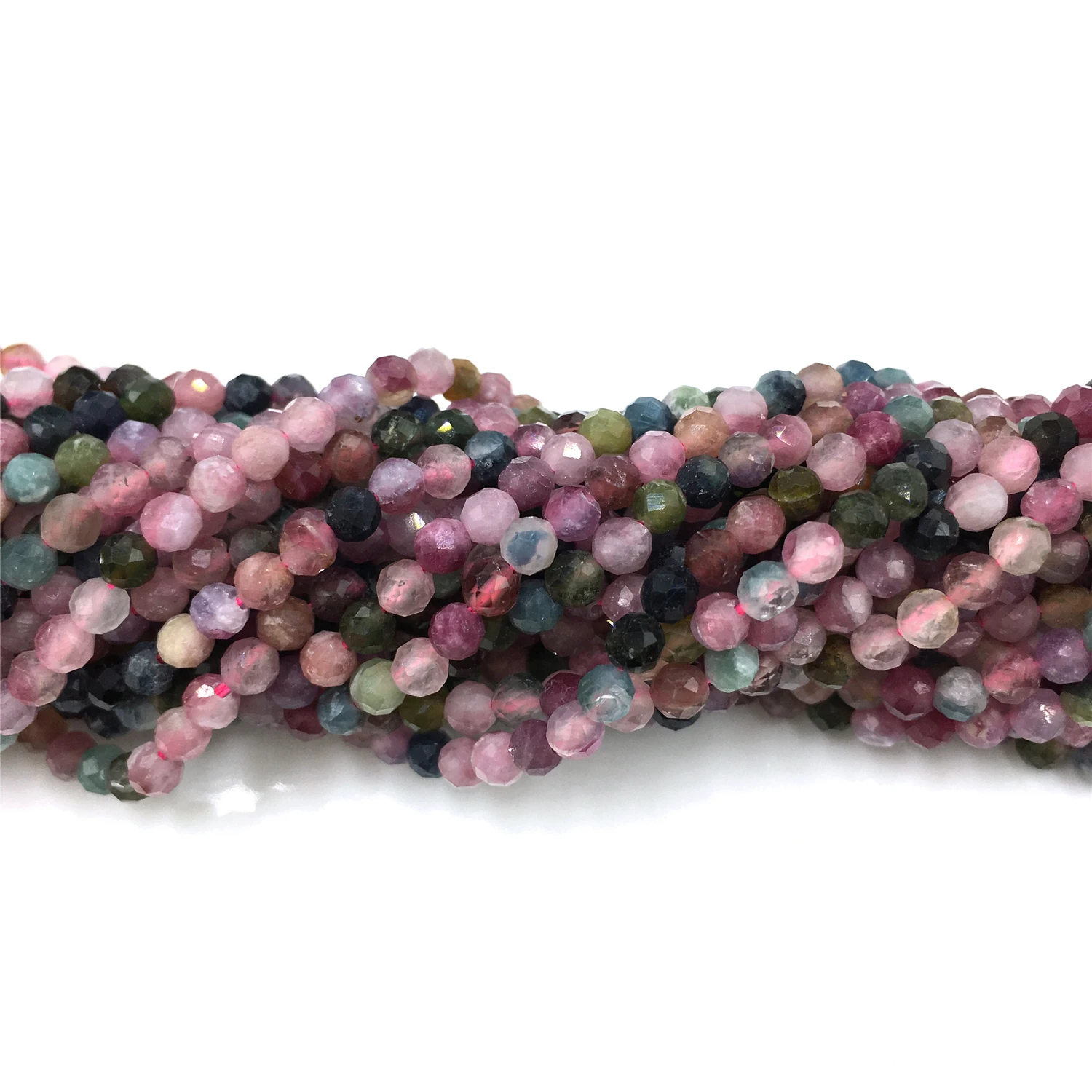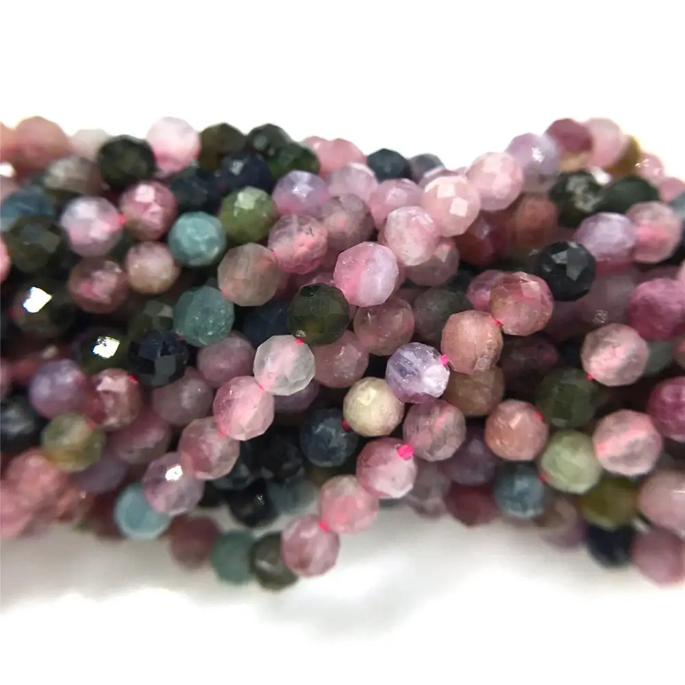 Бусины Из Натурального турмалина, розовые граненые маленькие каменные бусины для самостоятельного изготовления ювелирных изделий, ожерелья, кольца, браслеты, 15,5"