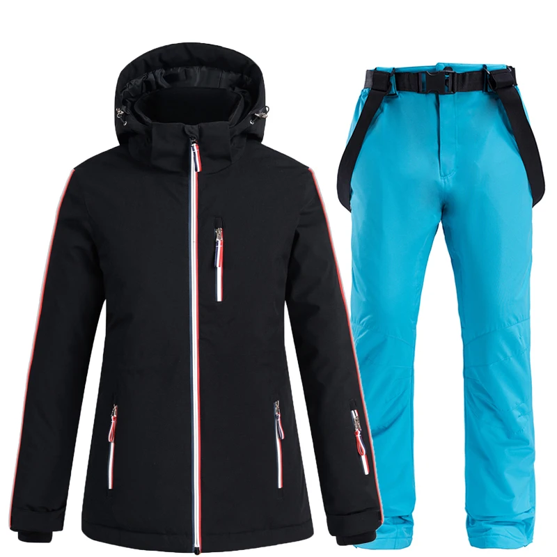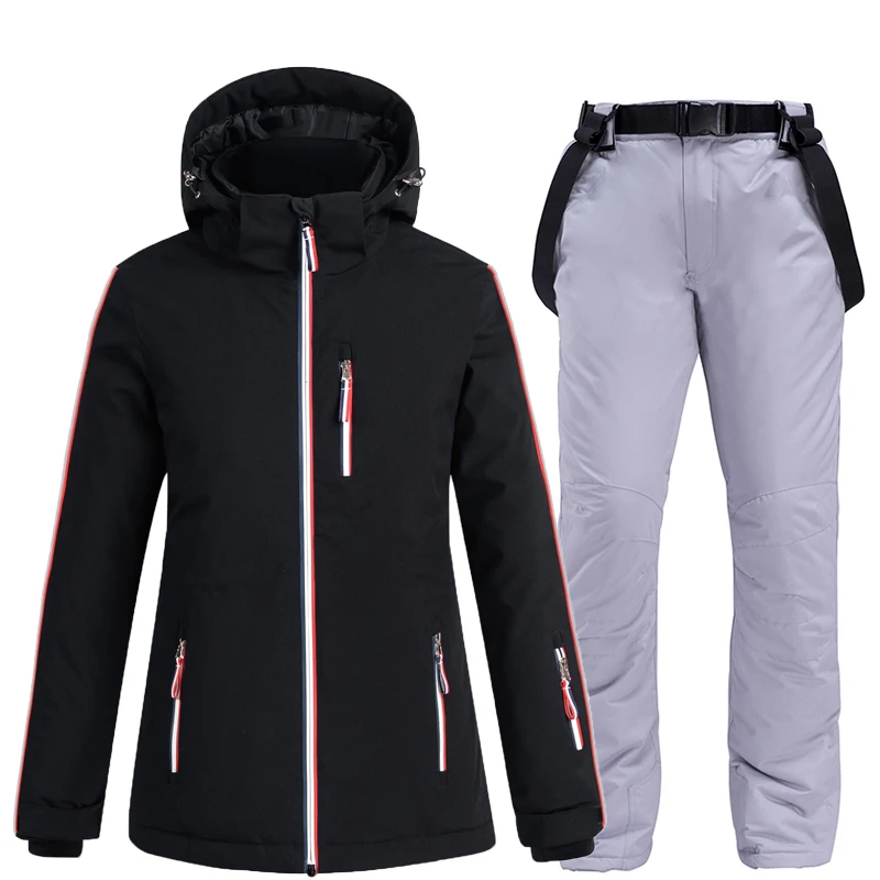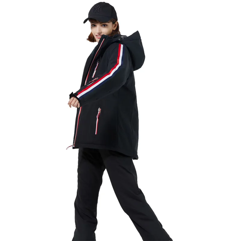 Женский костюм для снега и сноуборда, черная Водонепроницаемая зимняя Лыжная куртка и брюки на ремешке, до-30 шт.