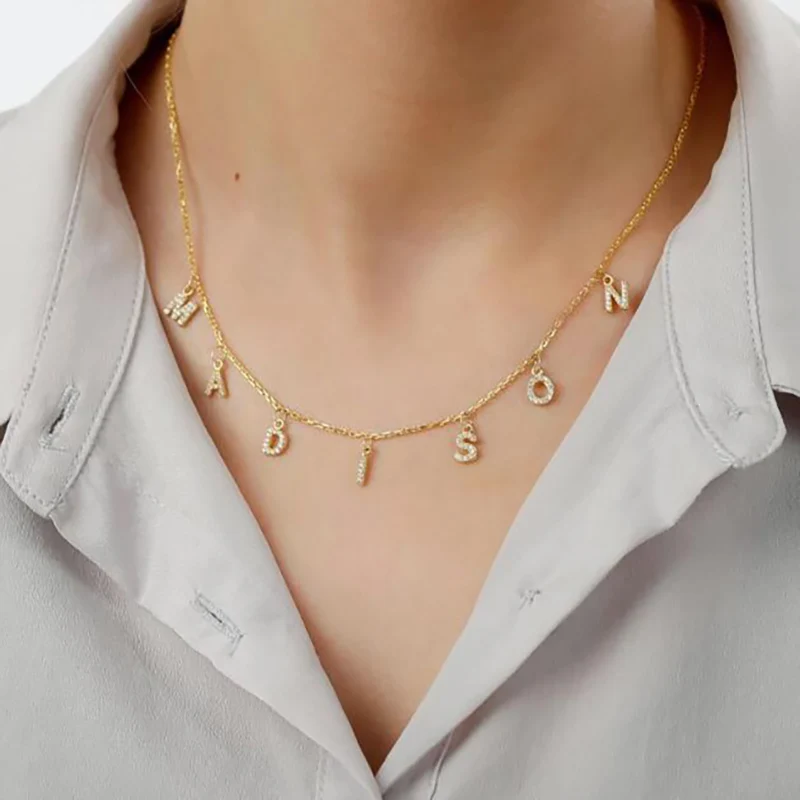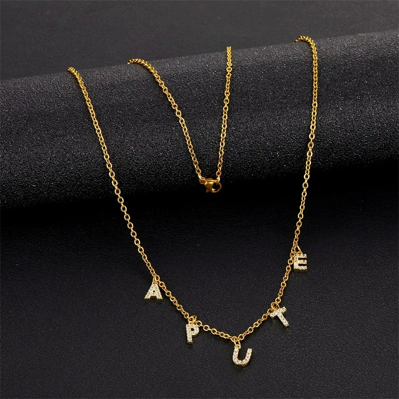 Ожерелье из нержавеющей стали с фианитами с именем на заказ, ожерелья с именем на заказ, ожерелья с кулоном, цепочка для женщин, ювелирные изделия, подарок на день рождения