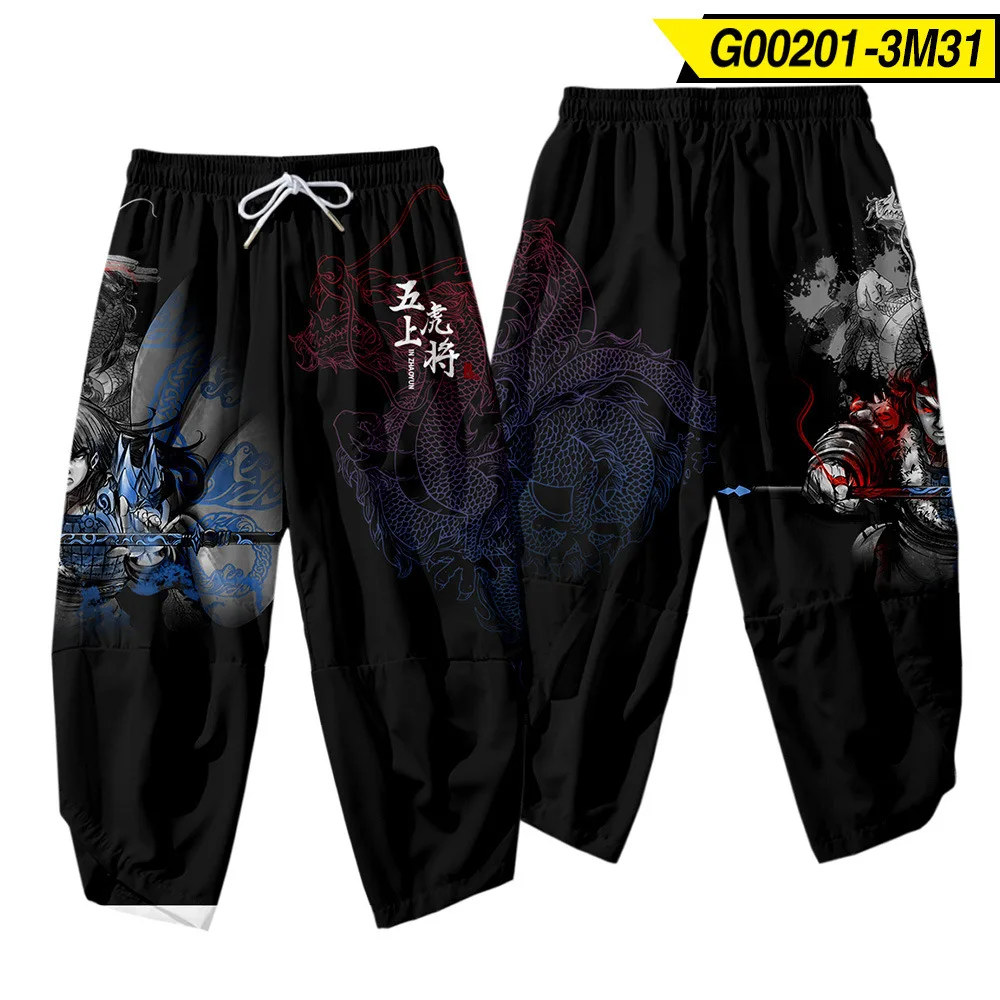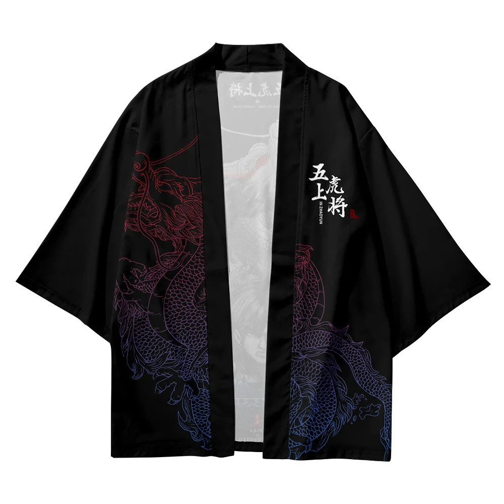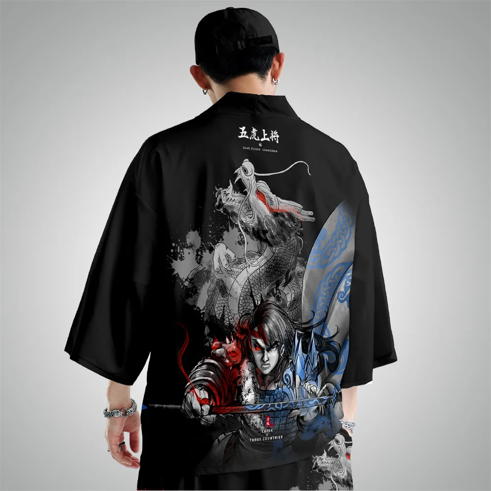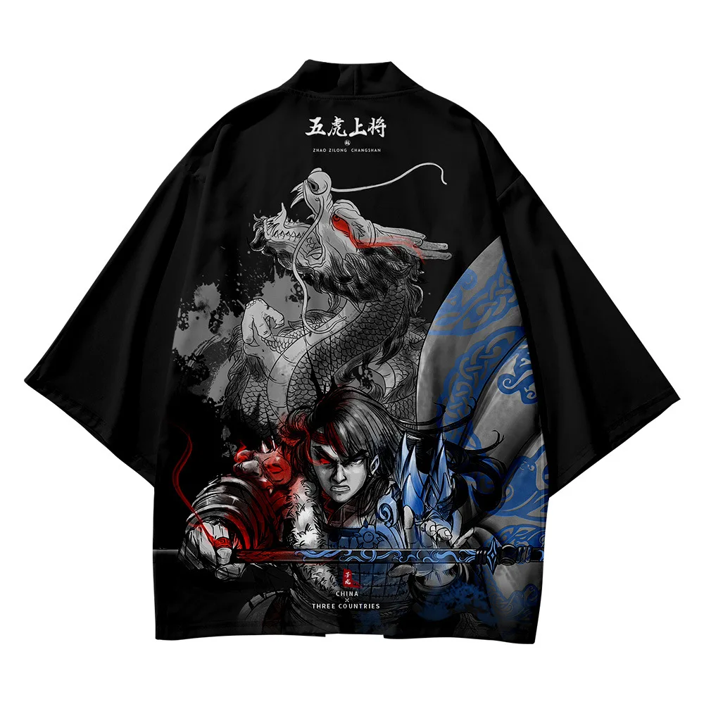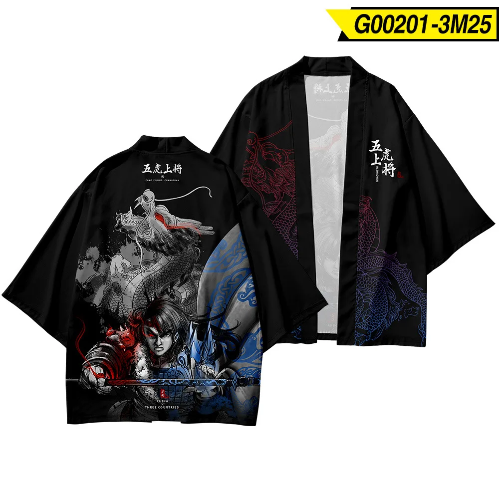 Кимоно мужское с китайским аниме принтом, кардиган в традиционном японском стиле, повседневный Свободный Тонкий комплект из пальто и брюк, азиатская одежда в стиле Харадзюку