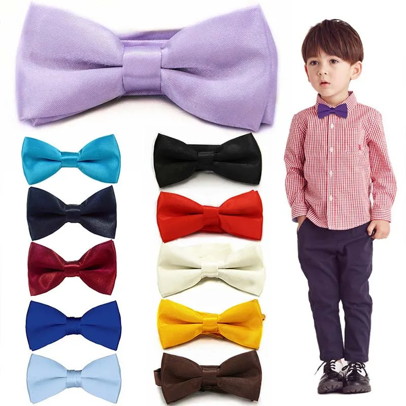 Свадебный галстук-бабочка, новинка, регулируемый нарядный атласный Детский галстук-бабочка для мальчиков, однотонный черный однотонный Официальный галстук для девочек