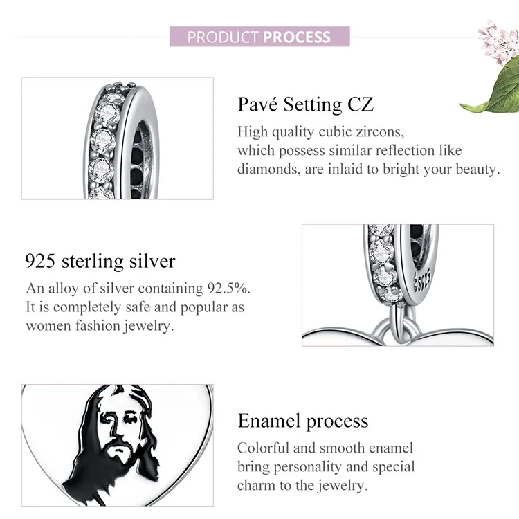 Размер: 1,9*1,2 смS925 + окисленное серебро + паве установка CZ + эмаль процессКлассические элементы в форме сердца и тисненая голова символизируют мечту и вера.