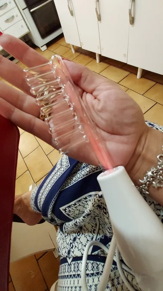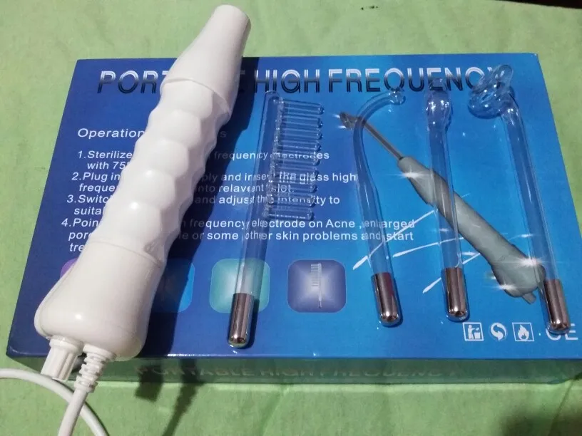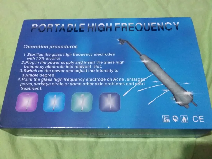 Спецификация:Напряжение: 110-240 ВЧастота: 50-60 ГцМощность: 10 ВтВилка: вилка ЕС/СШАОсобенности:100% новый и высококачественныйУдаление пятенЗаживляет шрамы кожиУлучшает кровообращениеУлучшение лимфатической активностиПитание кожиУсиление клеточного метаболизмаУлучшение секреции и значения PHУменьшает воспалениеСтерилизовать бактерииУскоряет заживление ранУменьшает видимые поры кожиПроцедуры работы:1. Непрямой метод ---- подходит для сухой и состаренной кожиВкрутите стеклянную трубку в руку.Удерживайте стеклянную трубку после прикосновения к тальку. Включите устройство, и электричество пройдет.Массируйте лицо от шеи до подбородка и от козырька до лба.2. Прямой метод ---- подходит для жирной натуральной кожиСначала нанесите эссенцию и крем на лицо, а затем прижмите металлическую планку, чтобы положить стеклянный тюбик на лицо. Включите аппарат.Помассируйте стеклянной трубкой, такой как «Z» или спираль на лице, выполните лечение следующим образом, лоб, нос, правая сторона лица, подбородок, левая сторона лица, нос, лоб.3. Метод блеска ---- подходит для ран, боли и воспаленийНакройте глаза куском влажного тканевого пластыря и коснитесь лица стеклянной трубкой со стороны воспаления. За один раз лечение должно быть менее 10 сек.Это нормально, если появляются блестки, пока стеклянная трубка прикасается к лицу.4. Метод ухода за волосами-стимулирует уменьшение поверхности кожиФолликулит и улучшение здорового роста волосИспользуйте гребневую трубку (намного лучше вместе с пилятором).В направлении волоса для перемещения гребня.После использования Установите интенсивность на «0». Убедитесь, что аппарат выключен и вытащите стеклянную трубку из части руки.Посылка1 х основная машина1 х электродная стеклянная трубка (гребневая трубка, язычок, грибной ТОБ, гнущаяся трубка)1 х Инструкция пользователя