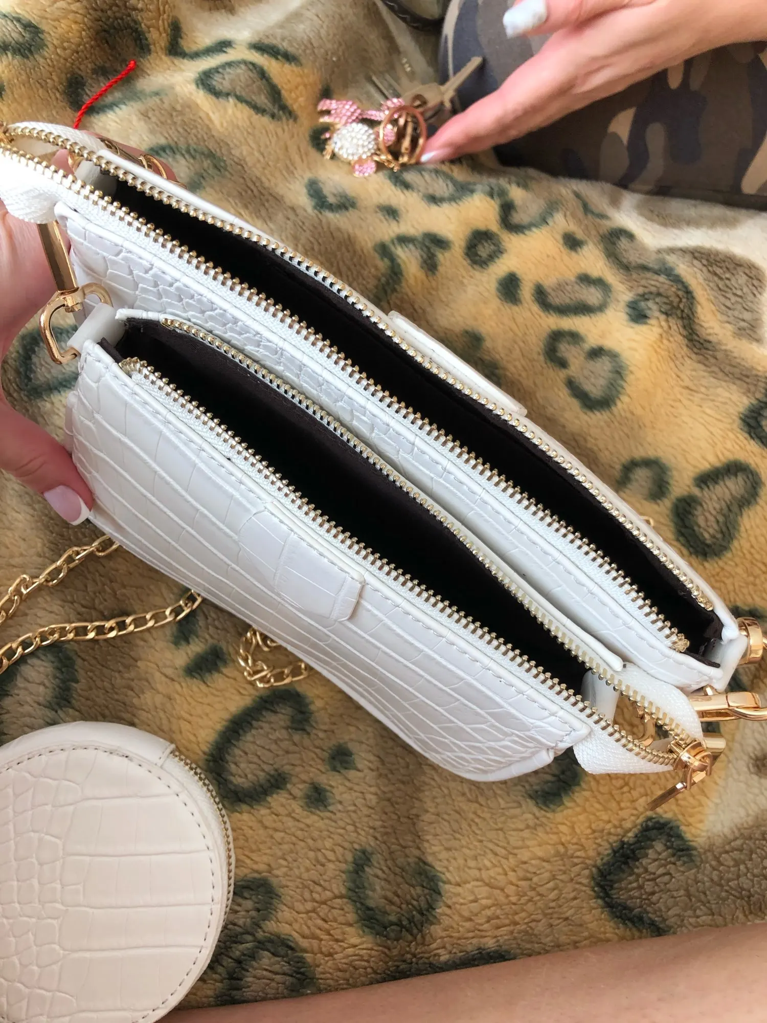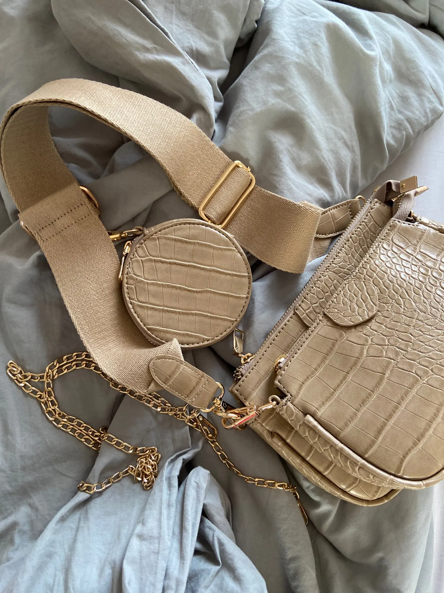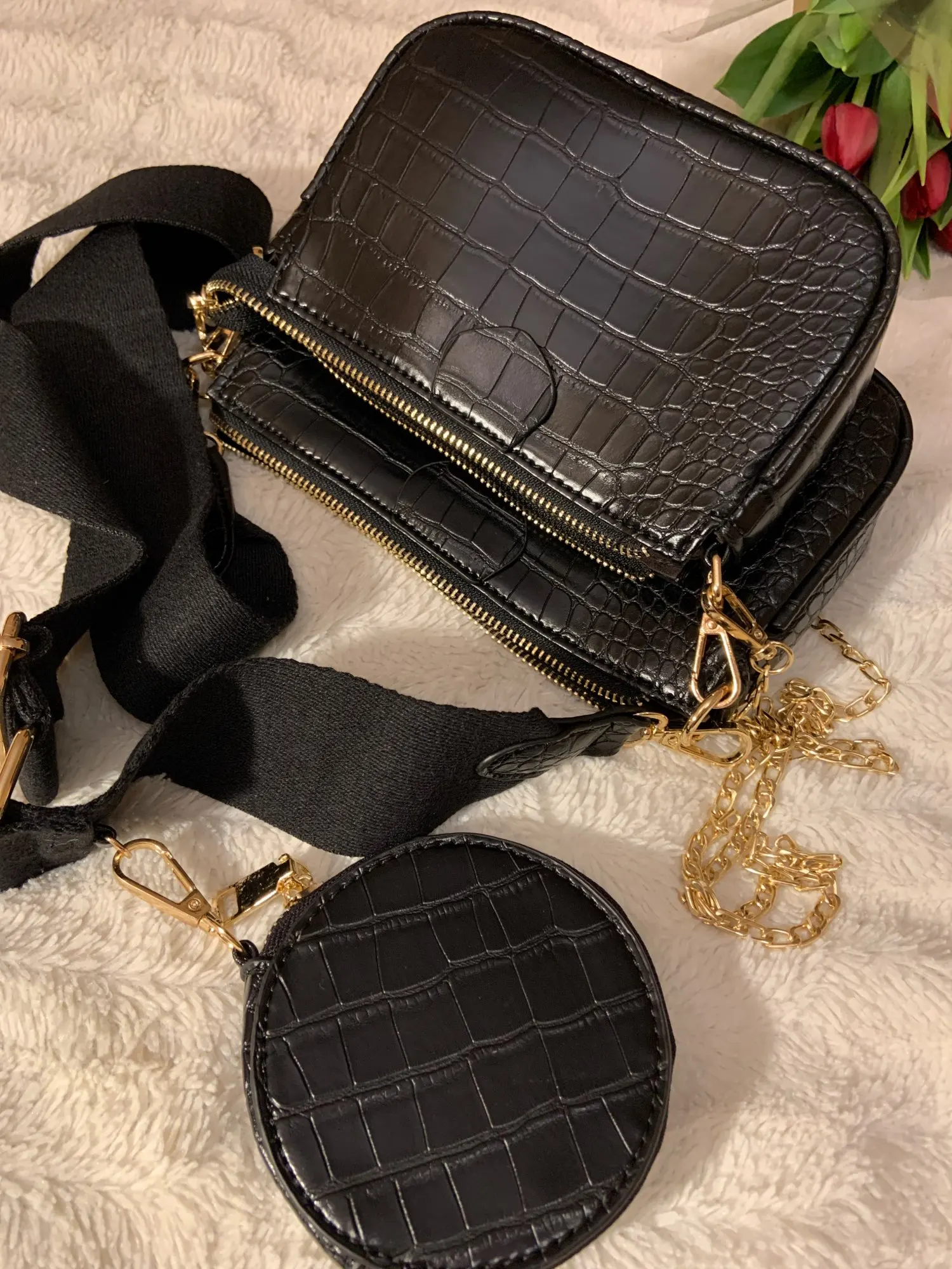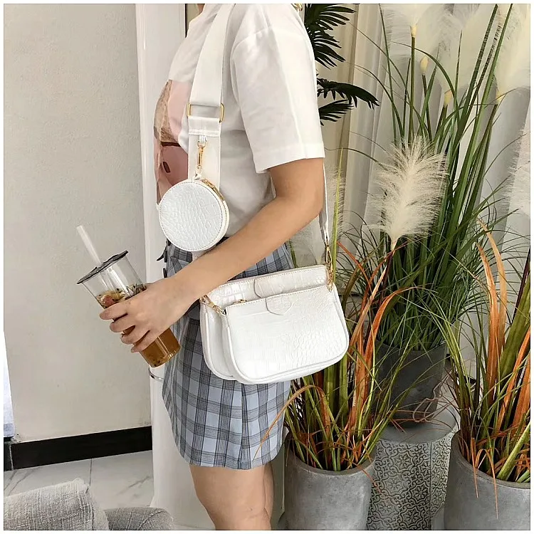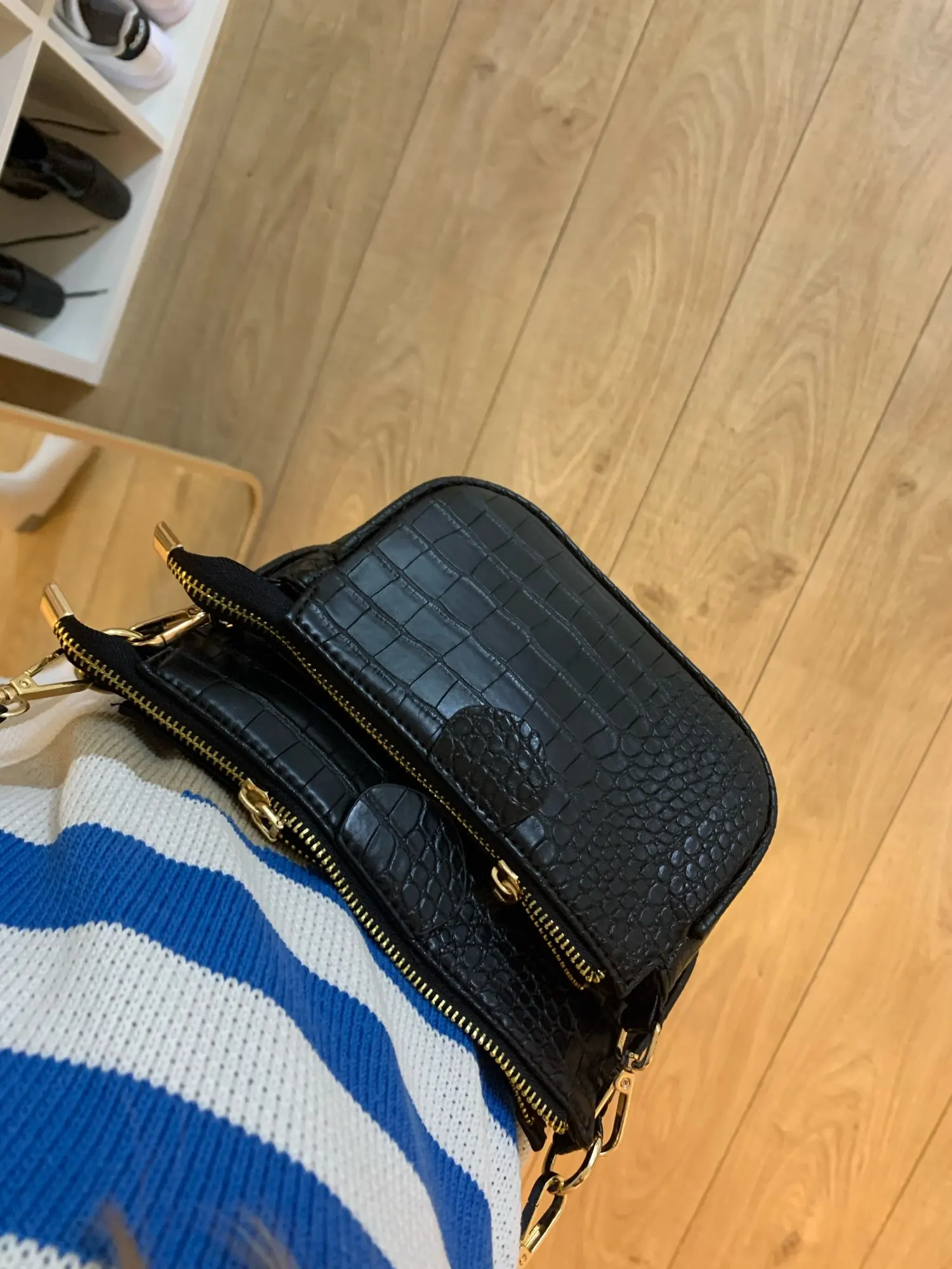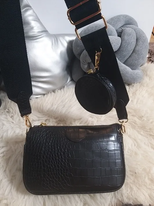 Женская сумка через плечо, с принтом под крокодиловую кожу, с широким ремешком