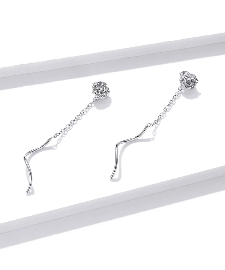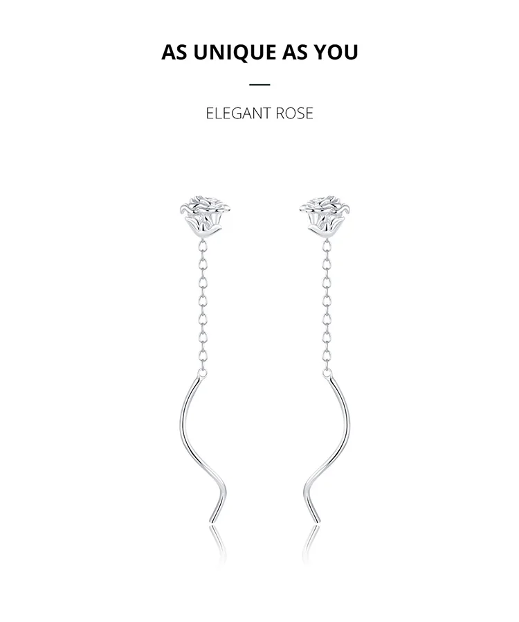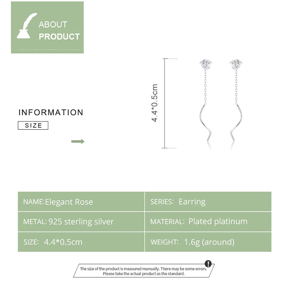 Аутентичное Стерлинговое Серебро bamoer 925, длинные висячие серьги с 3D цветком розы, подвеска-цепочка, Серьги-кисточки BSE441