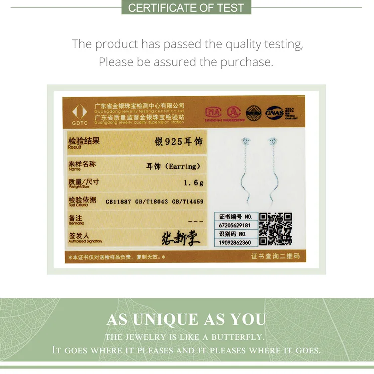 Женские длинные висячие серьги WOSTU, из серебра 100% пробы, с летя...
