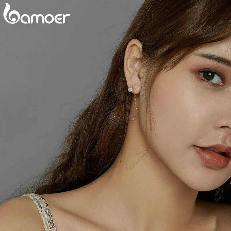 Bamoer длинные серьги-подвески для женщин, 925 пробы серебро, прозр...