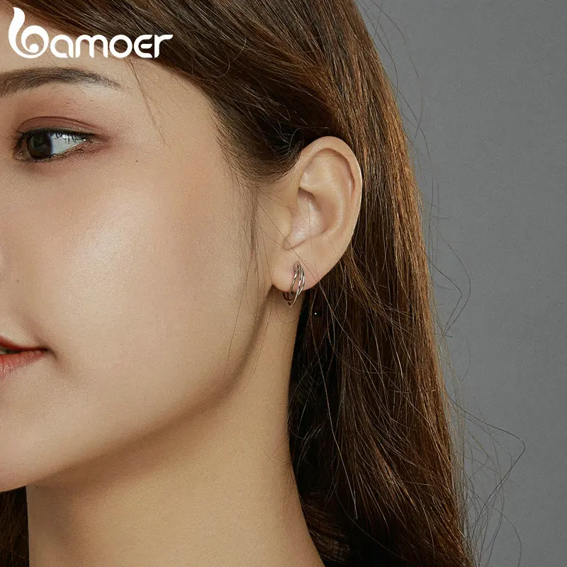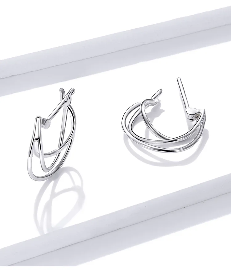 Серьги-кольца женские из серебра 925 пробы, с переплетенными линиями