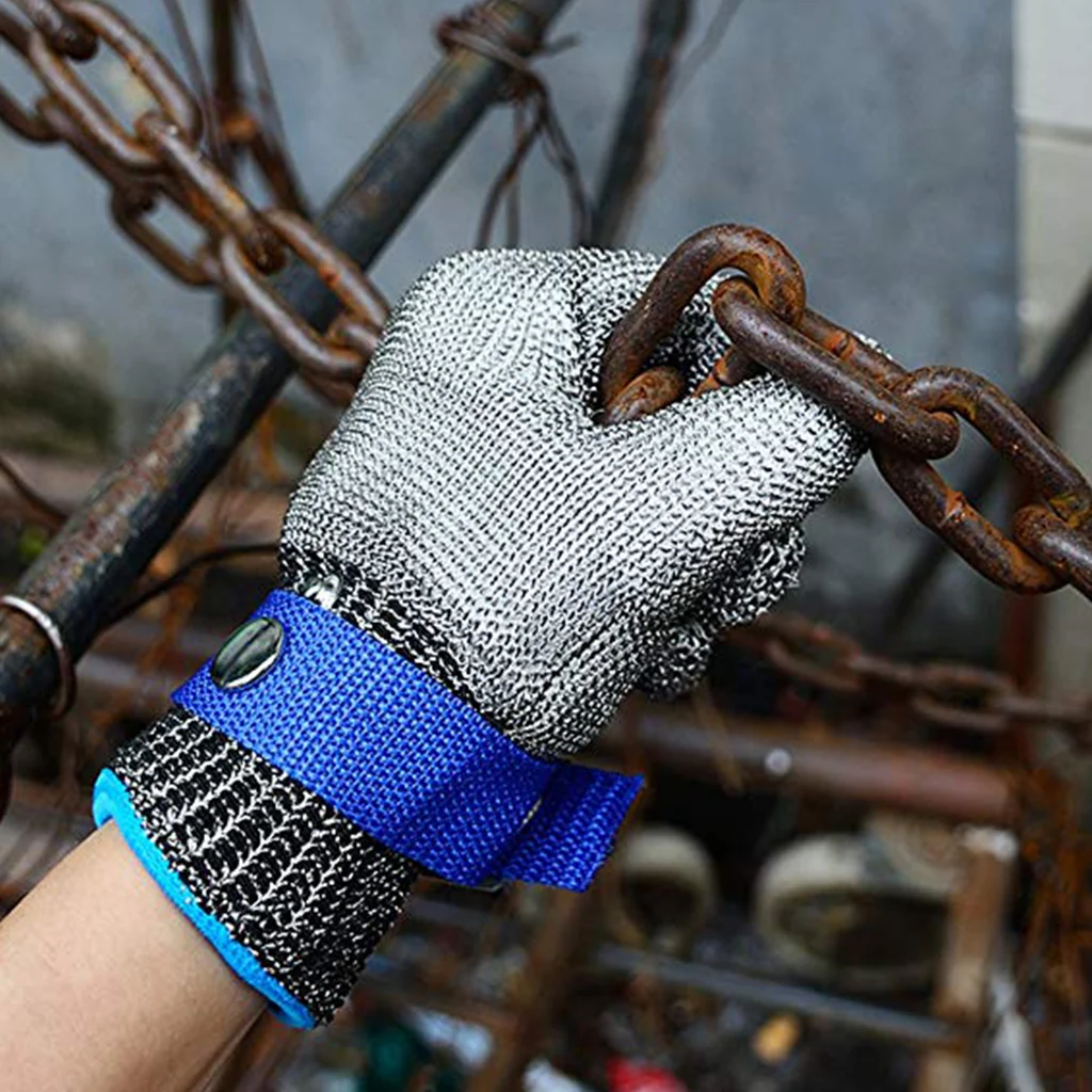 Сине-красная Защитная устойчивая к ударам металлическая сетчатая перчатка из нержавеющей стали для мясника Высокоэффективная Защита уровня 5