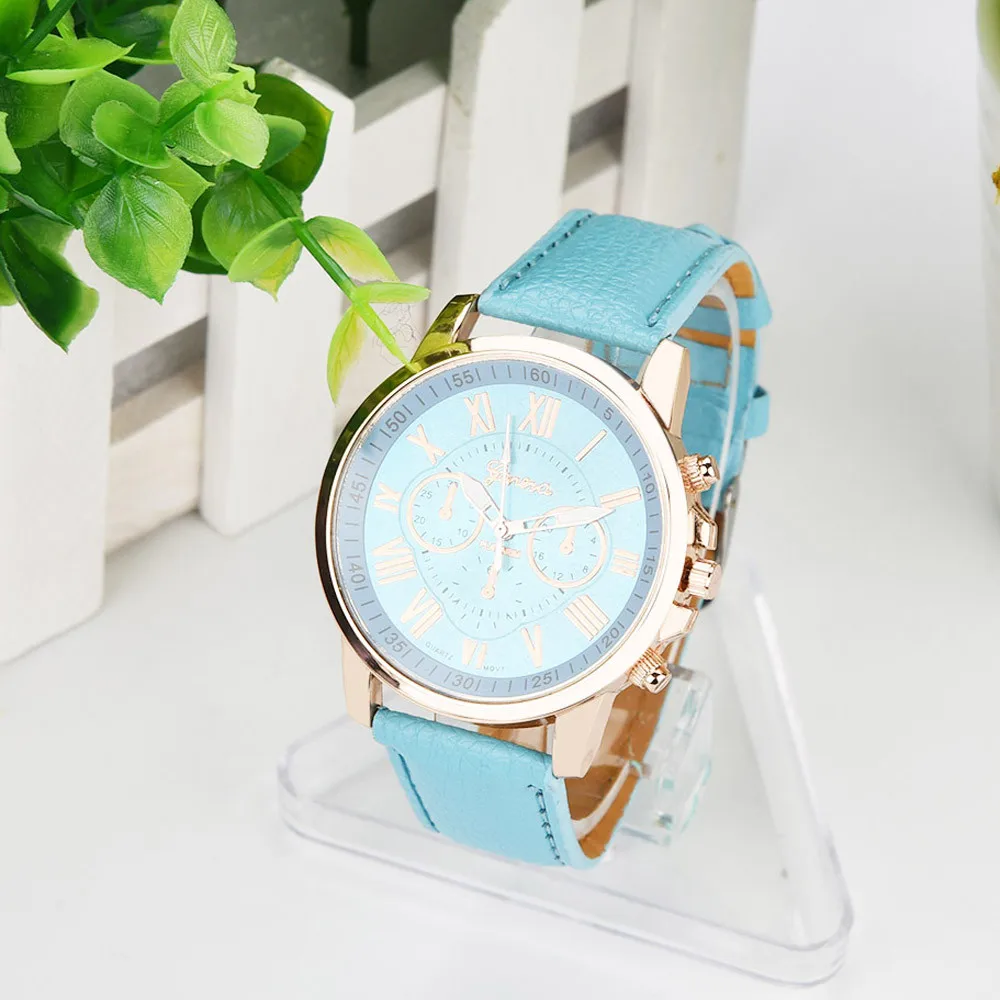 Женские римские цифры Geneva Аналоговые кварцевые часы из искусственной кожи