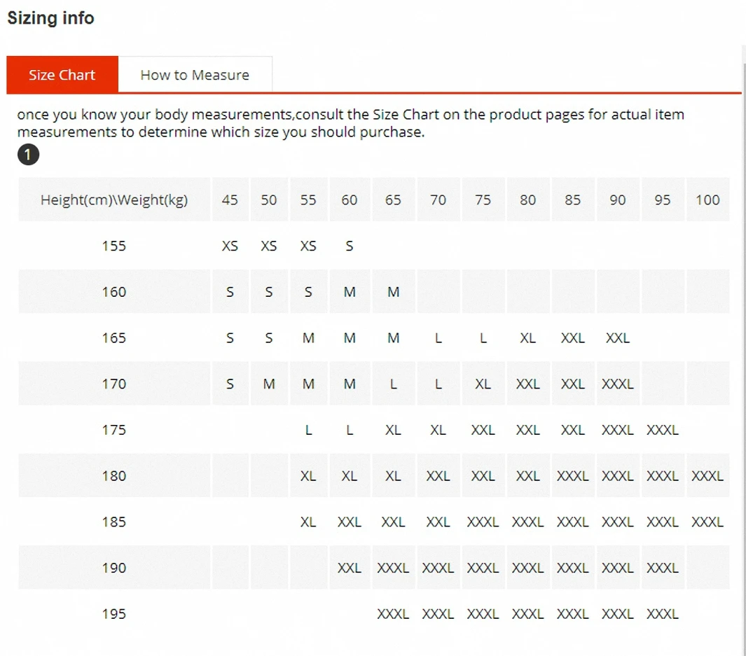 1. Как только вы узнаете свои мерки тела, обратитесь к таблице размеров на страницах продукта, чтобы узнать, какой размер вам следует приобрести.
