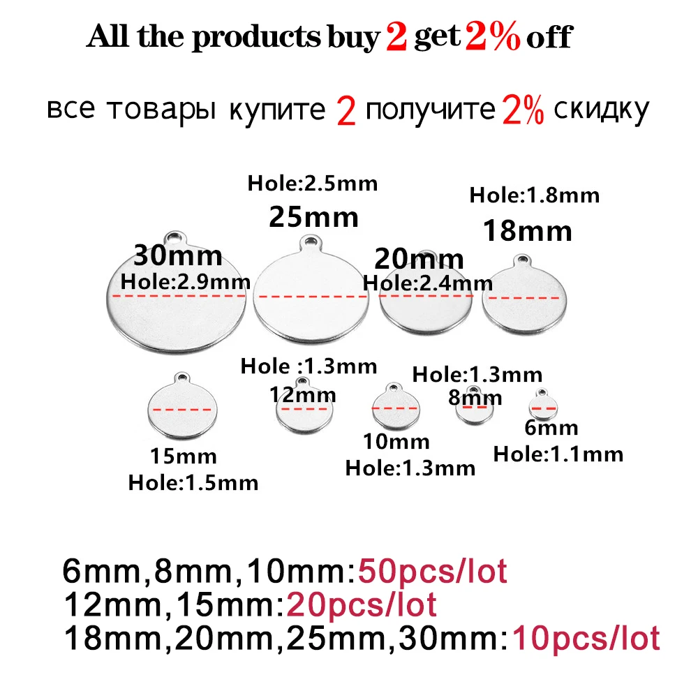 10-50 шт.лот 6-30 мм из нержавеющей стали штамповка пустой кулон амулеты круглая собачья бирка кулон для ожерелья DIY ювелирных изделий в поисках