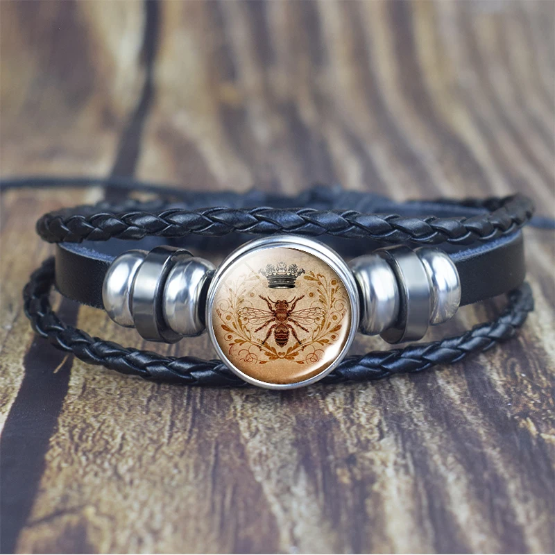 Кожаный браслет со стеклянным куполом и знаками Зодиака, 12 дюймов