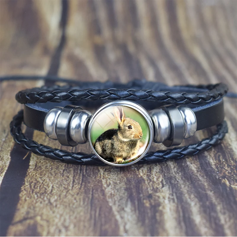 Кожаный браслет с изображением лисы, кота, кролика, модный мужской и женский браслет в стиле панк, браслет с дельфином, медведем, зеброй, браслеты разных видов с животными, ювелирные изделия
