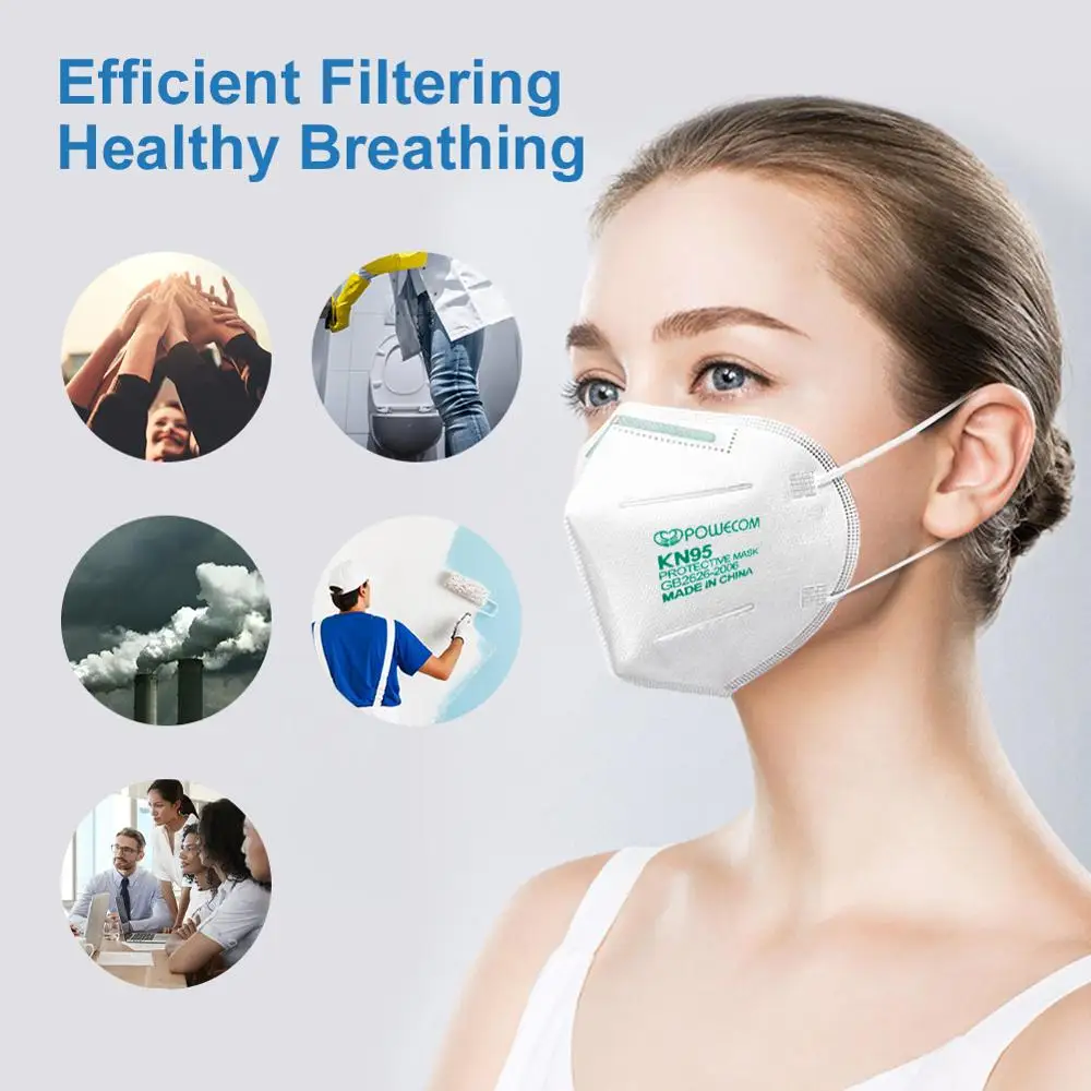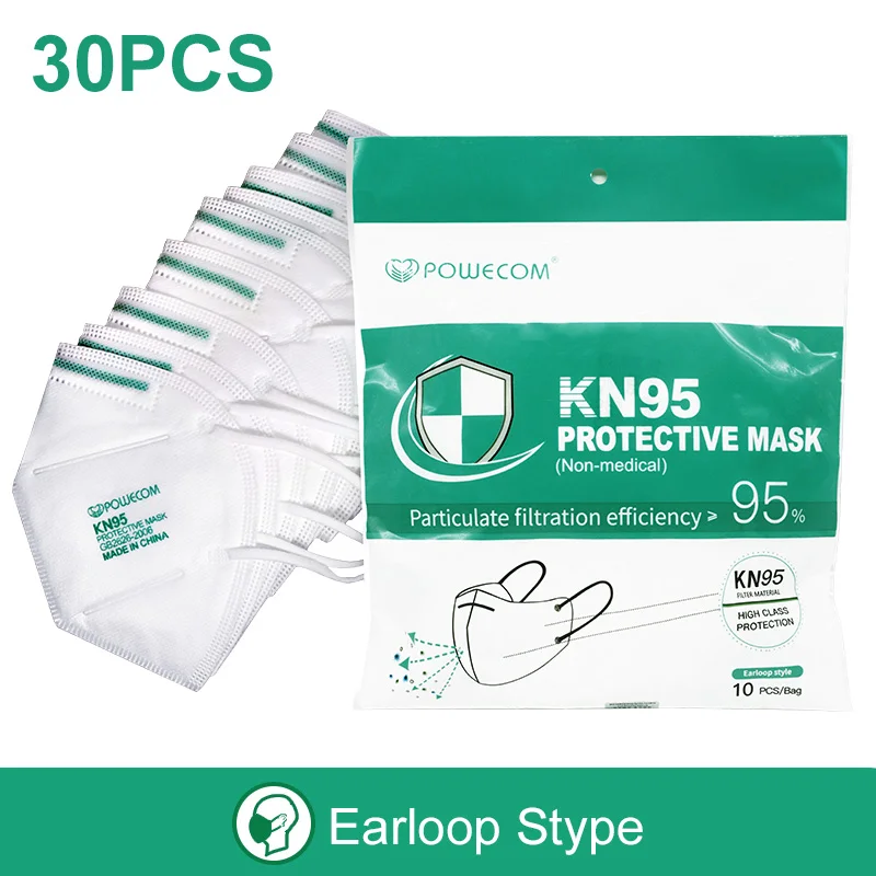 POWECOM 30 шт. FFP2 маска для лица KN95 защитная маска 95% фильтрация CE сертифицированная маска для рта дышащая гигиеническая маска для рта Муфельная респиратор маска маски для лица защитные уходовые на рот многоразов
