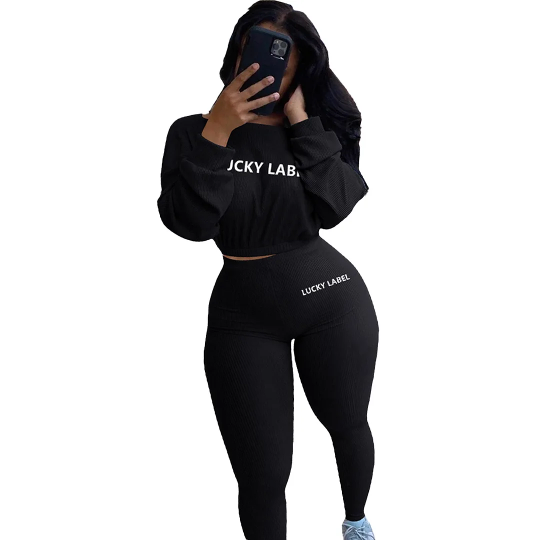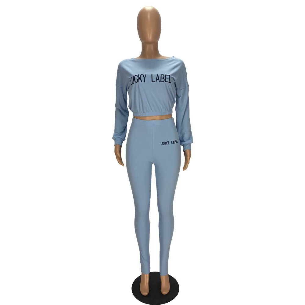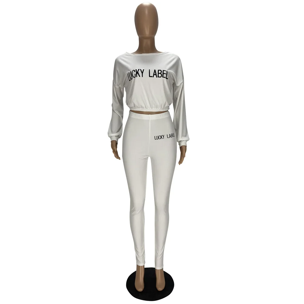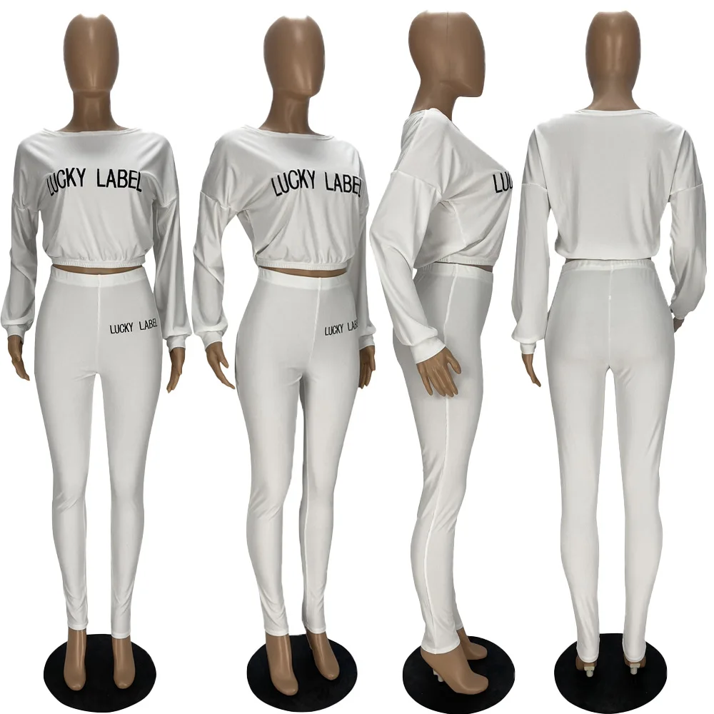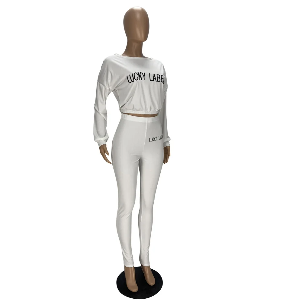 Lucky Lable Женский комплект из двух предметов с вышивкой и буквенным принтом, однотонные сексуальные укороченные футболки и брюки, женские костюмы