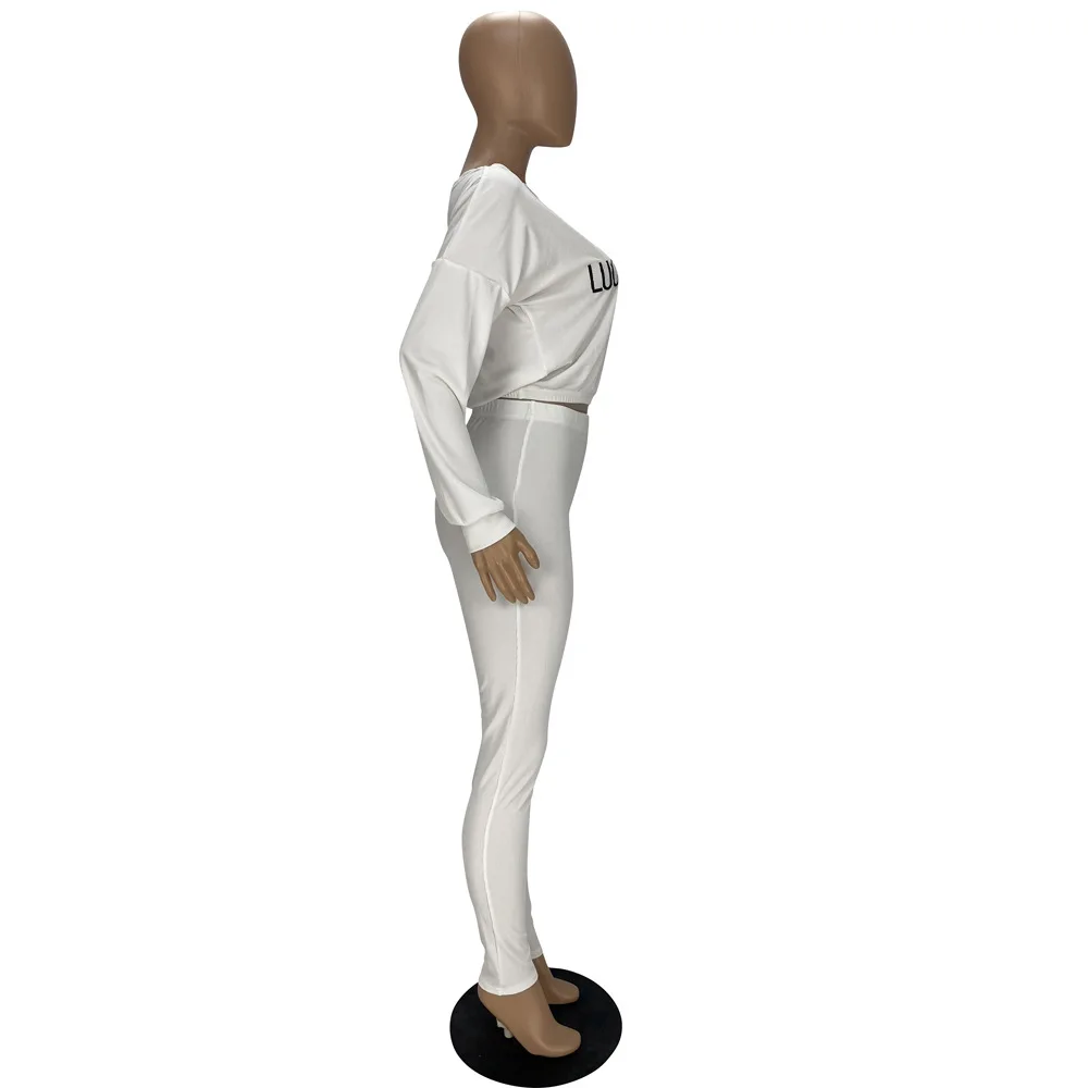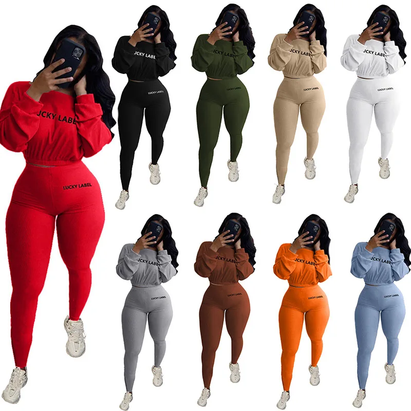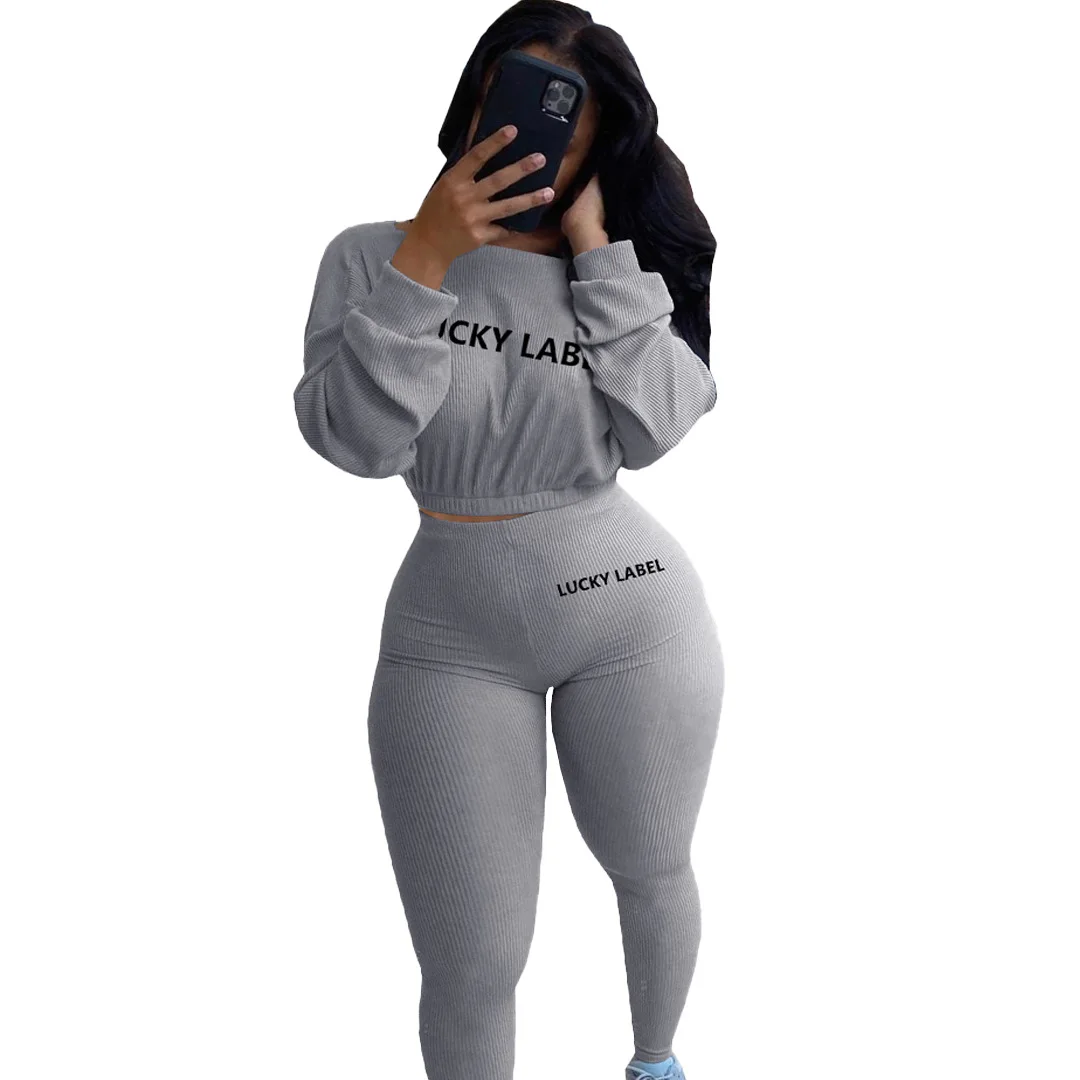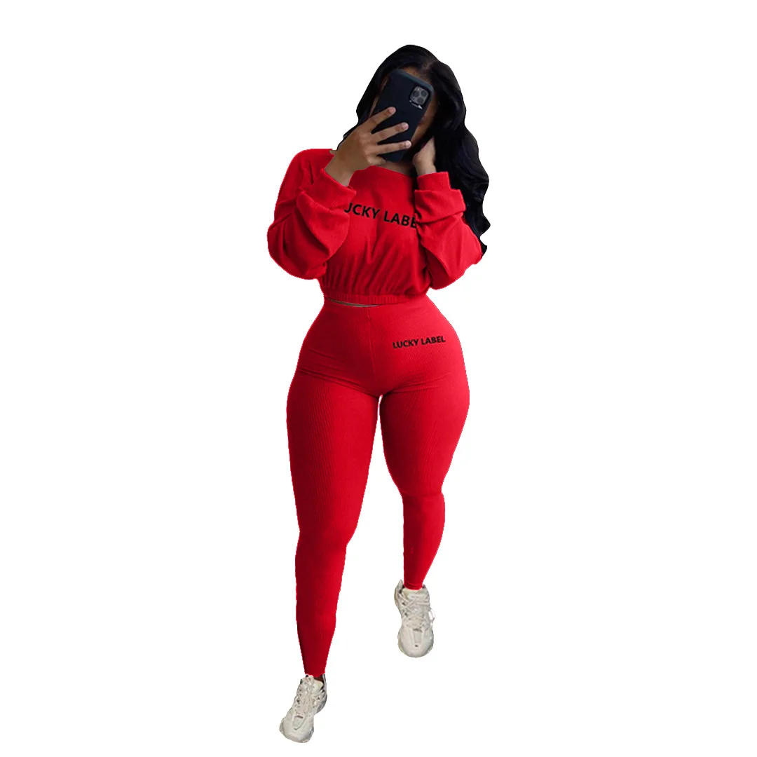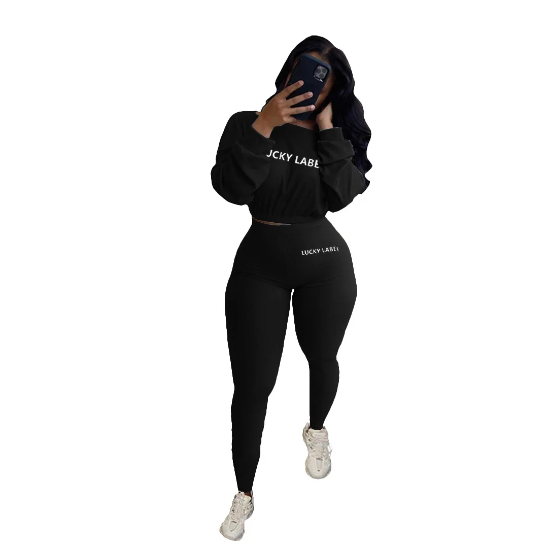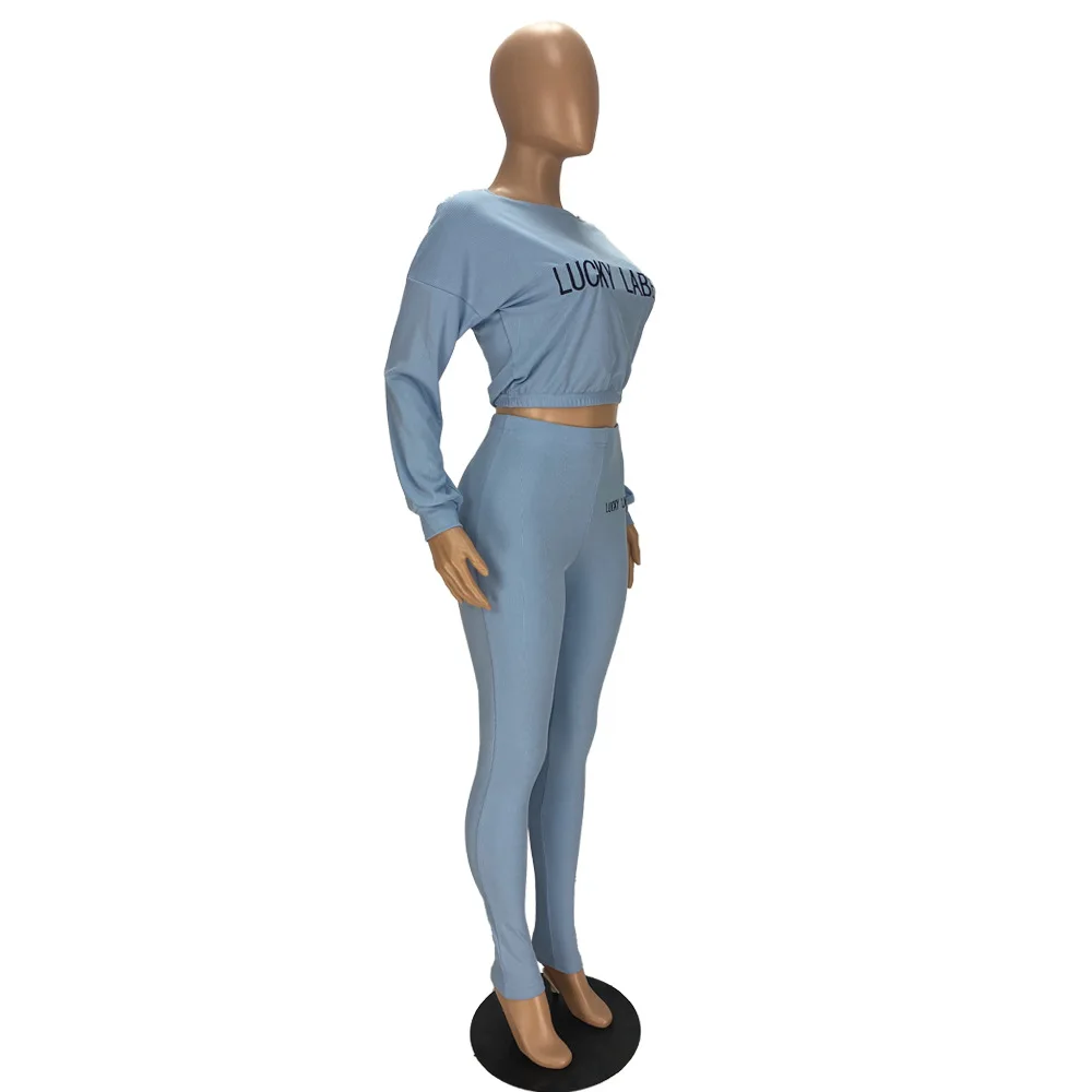 Lucky Lable Женский комплект из двух предметов с вышивкой и буквенным принтом, однотонные сексуальные укороченные футболки и брюки, женские костюмы