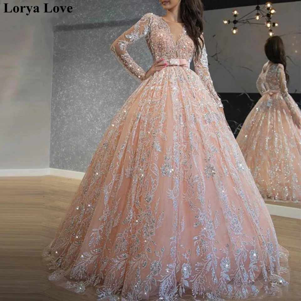 Блестящее Розовое Кружевное бальное платье с блестками, бальное пла...