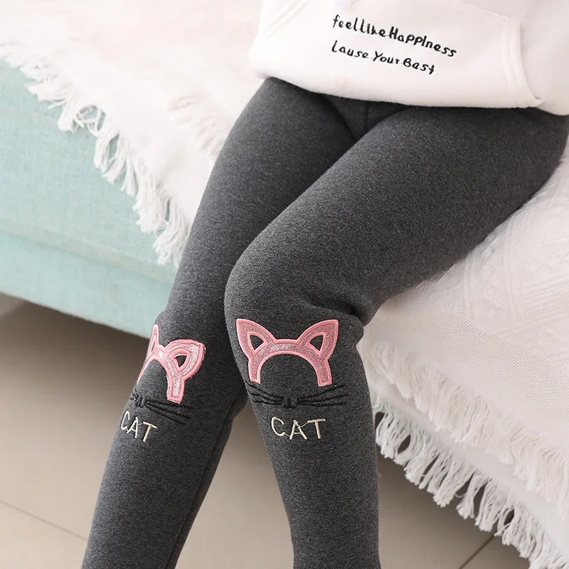 Теплые плотные леггинсы для девочек; Зимние вельветовые Хлопковые Штаны; Детские От 2 до 10 лет брюки с милым рисунком кролика и кошки