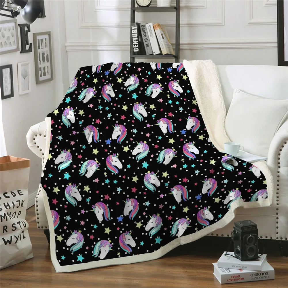 Одеяло детское, с рисунком единорога, плюшевое покрывало для дивана, кровати