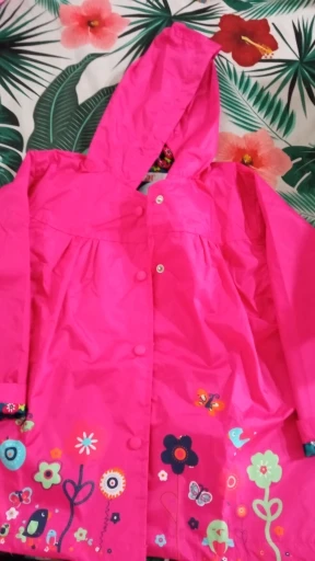 Muy bonito,igual que en la foto,es impermeable y muy bien confeccionado recomiendo al vendedor. Talla 5 para Nina de 3 años le queda un poco largo de mangas pero se puede dar un par de vueltas a las mangas al tener forro estampado de flores.Recomiendo la tienda, muchas gracias.