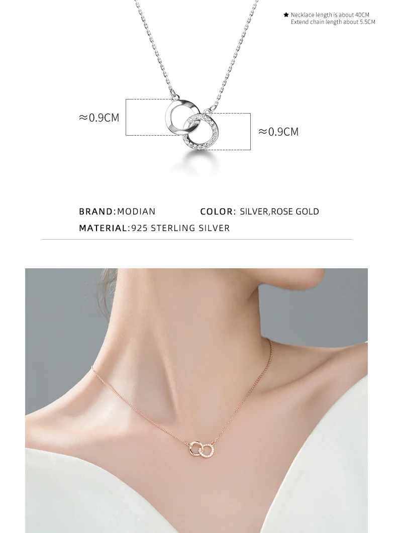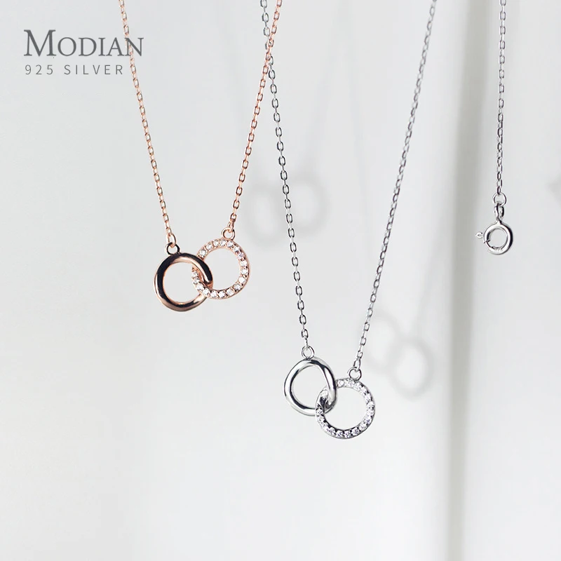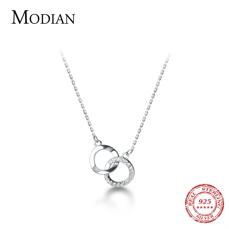 Женская подвеска-цепочка Modian, ожерелье из стерлингового серебра 925 пробы с кубическим цирконием геометрического дизайна