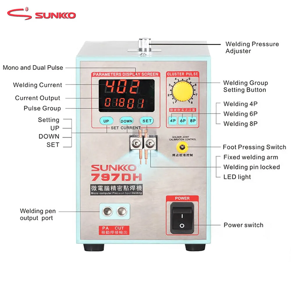 797DH 18650 Аккумуляторная машина для точечной сварки 3,8 кВт высокомощный точечный сварщик Точная точечная Импульсная Сварка машины с HB-70B сварочной ручкой