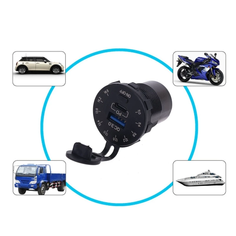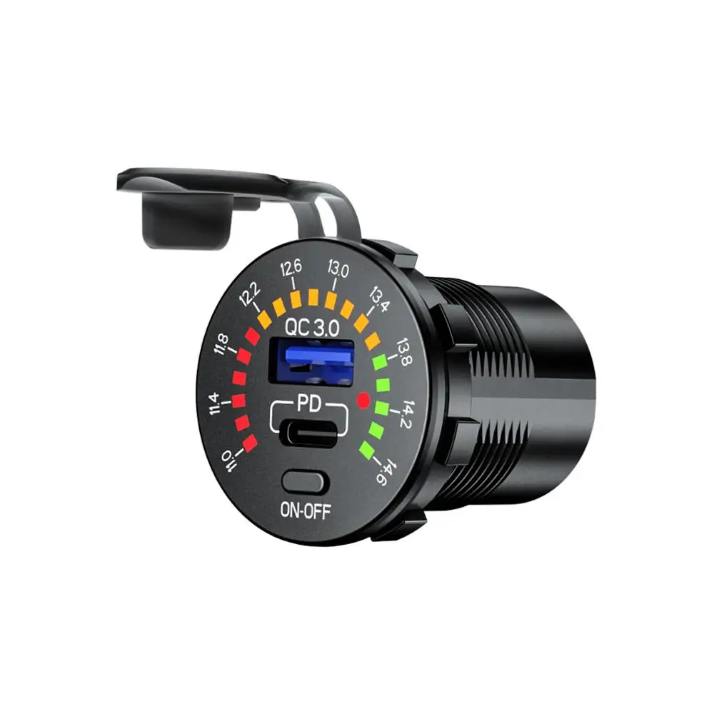 Водонепроницаемый 12V Быстрая зарядка QC3.0 USB 18 Вт Тип C PD автомобиля Зарядное устройство с светодиодный вольтметр вкл/выкл переключатель для внедорожник Мотоцикл морской катер
