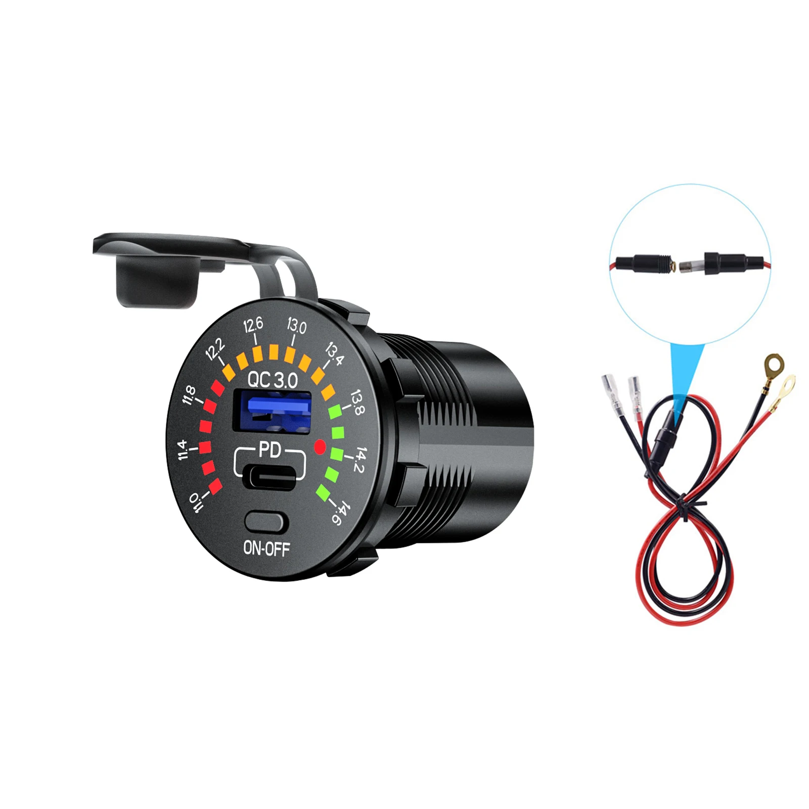Водонепроницаемое автомобильное зарядное устройство 12 В Quick Charge QC3.0 USB 18 Вт Type C PD со светодиодным вольтметром и переключателем вкл.выкл. Для кроссоверов, мотоциклов, морских лодок