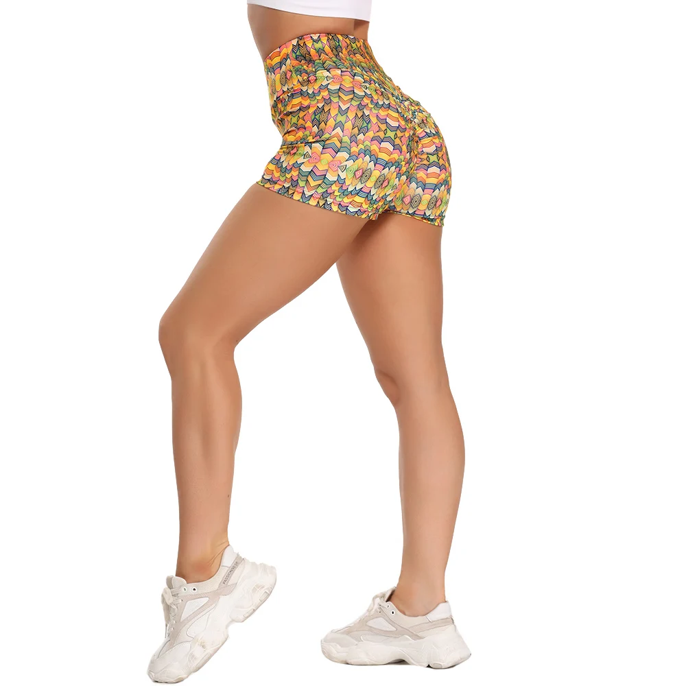 Летние женские повседневные шорты для йоги с высокой талией, одежда для фитнеса, спортивные шорты для бега, Эластичные Обтягивающие пляжные шорты