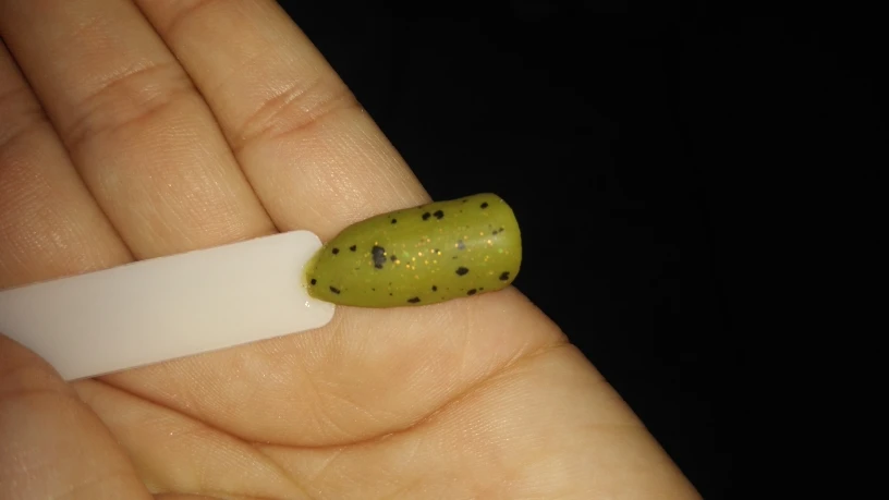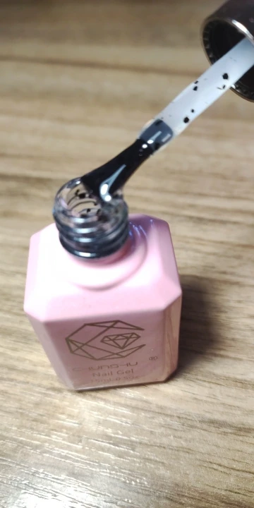 Гель-лак понравился. Довольно густой, для лучшего распределения пятнышек использовала тонкую кисть. Смотрится очень симпатично)